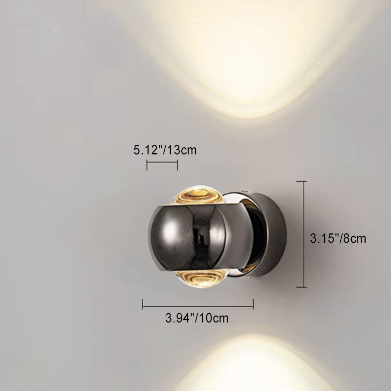 مصباح حائط LED عصري إبداعي دائري قابل للدوران مصنوع من الزجاج والحديد والألومنيوم لغرفة النوم