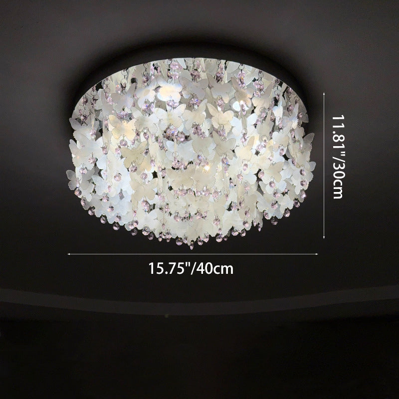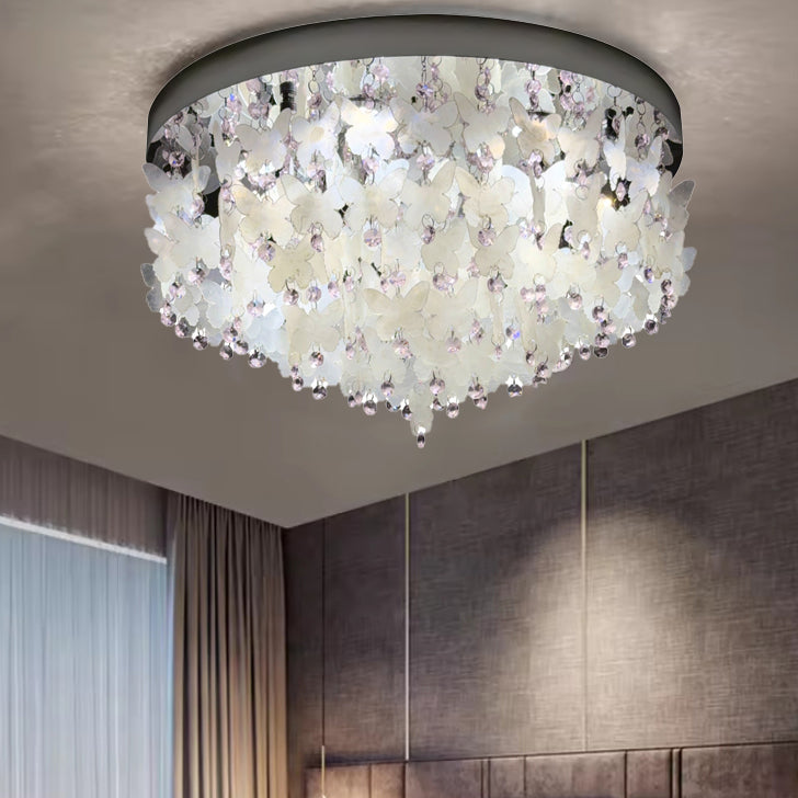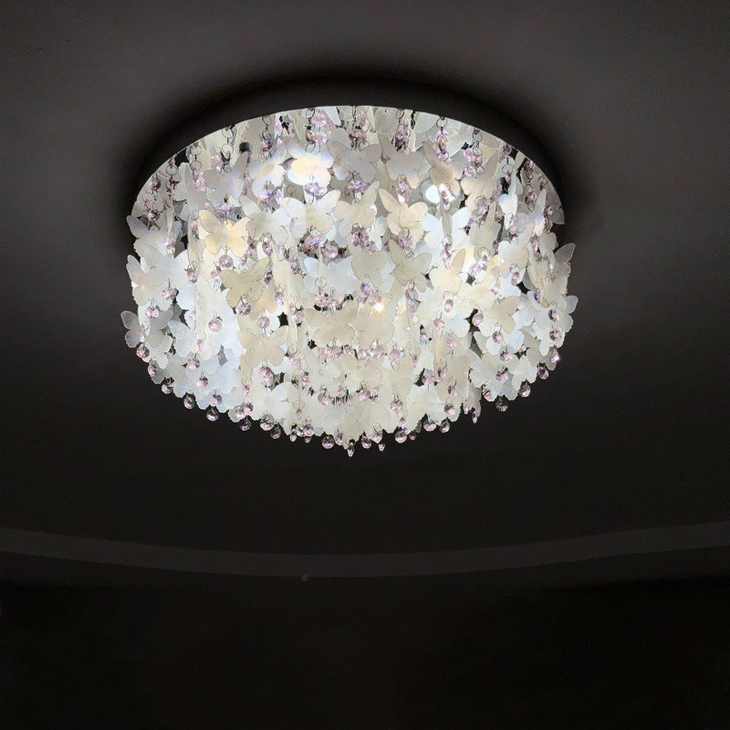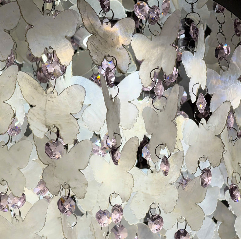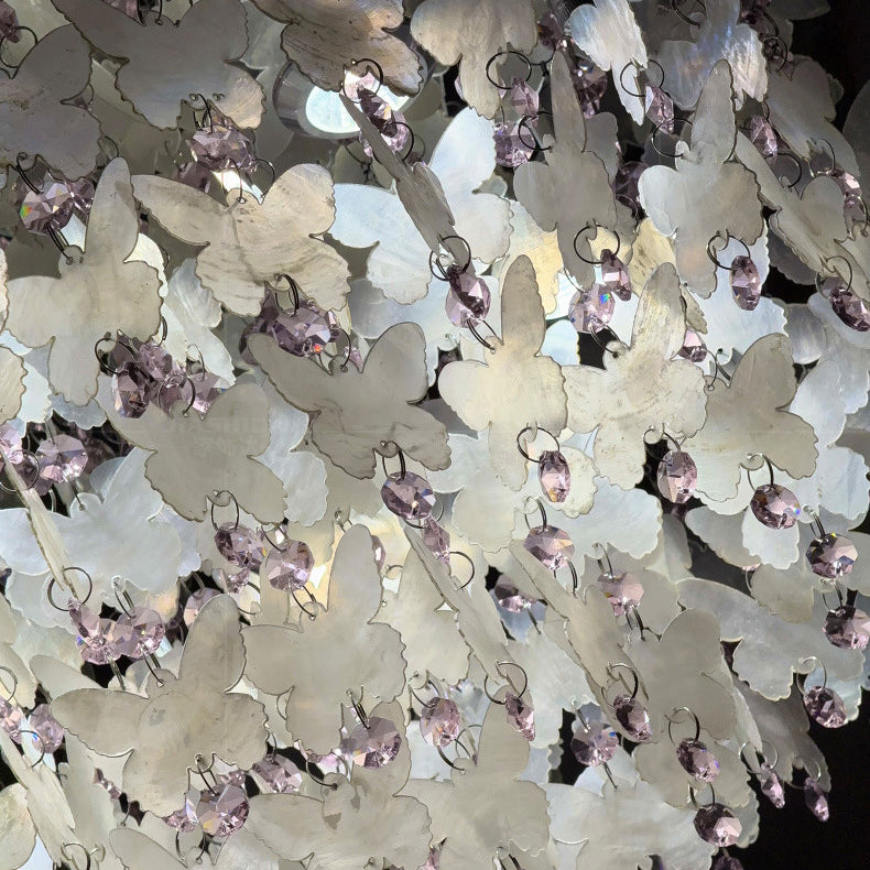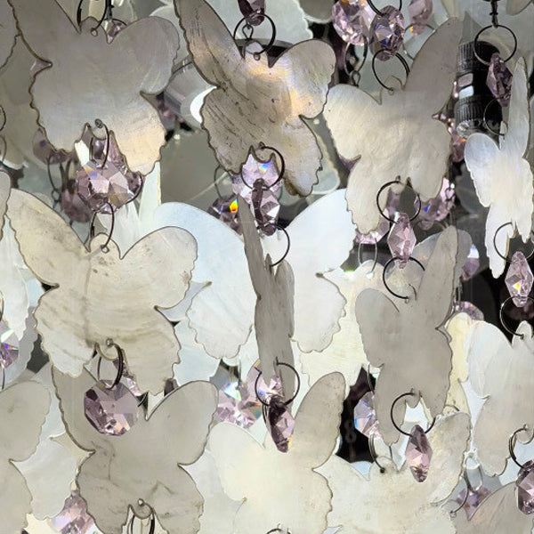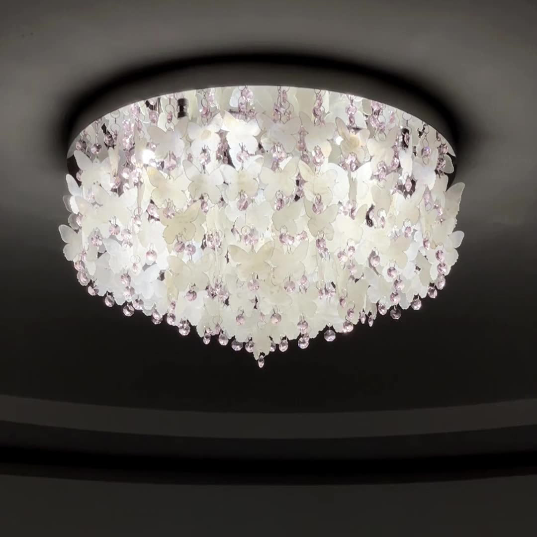مصباح سقف LED عصري إبداعي من الفولاذ المقاوم للصدأ على شكل فراشة من الكريستال مع جرس رياح لغرفة النوم
