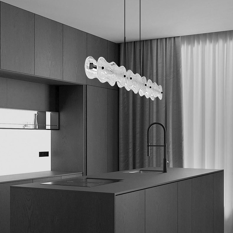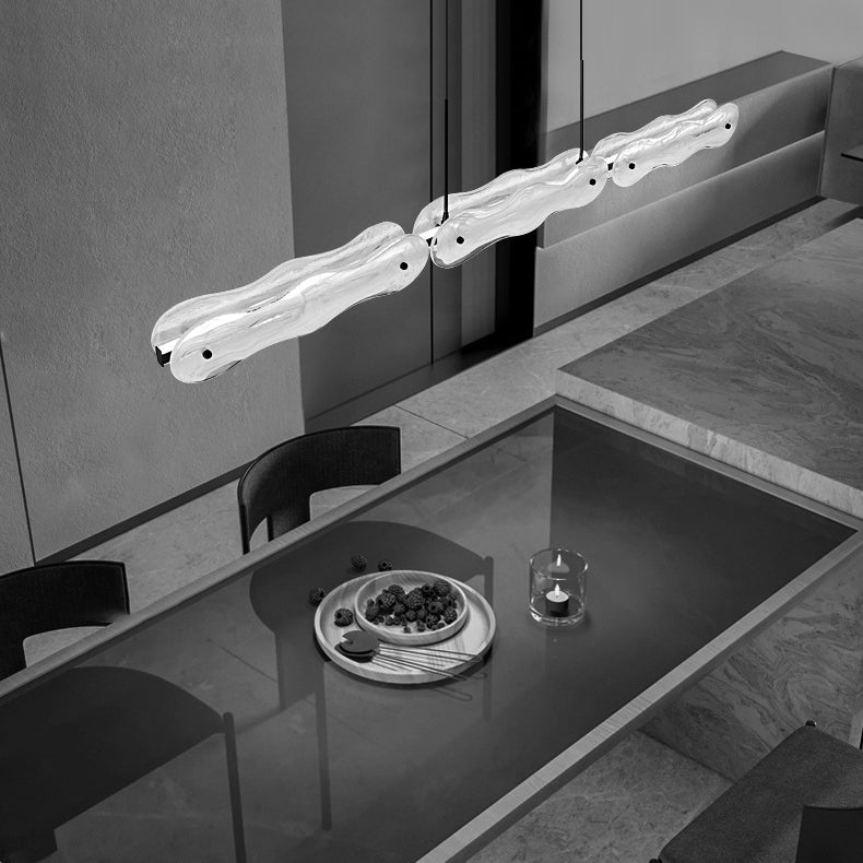 ثريا عصرية بتصميم موجة إبداعية نصف دائرية مصنوعة من الزجاج والنحاس مزودة بإضاءة LED لغرفة المعيشة