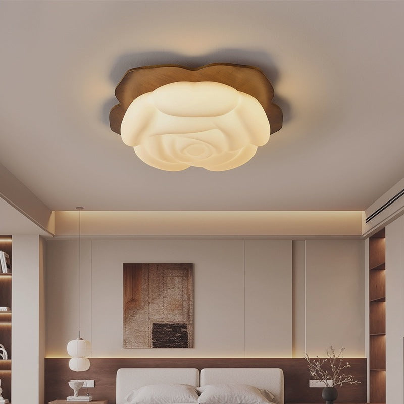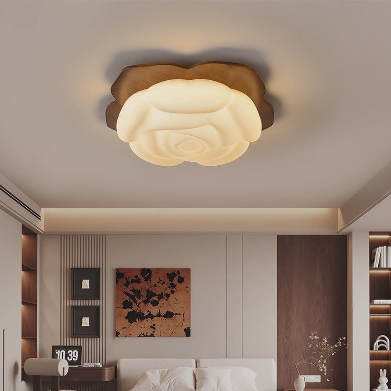 مصباح سقف LED عصري إبداعي من الخشب والبولي إيثيلين والحديد بتصميم أزهار لغرفة النوم وغرفة المعيشة