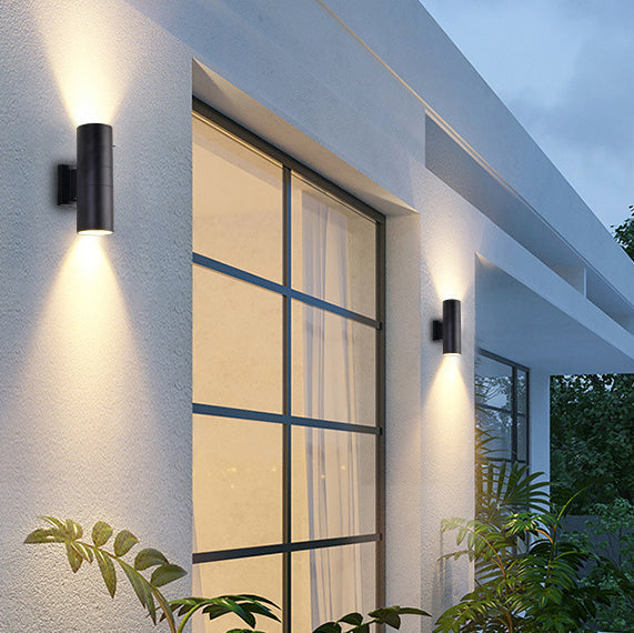 مصباح حائط LED عصري صناعي من الألومنيوم مضيء لأعلى ولأسفل ومقاوم للماء للفناء الخارجي