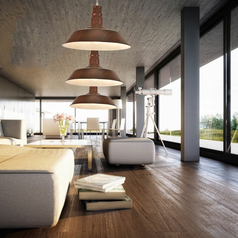 مصباح معلق صناعي معاصر من الألومنيوم على شكل قبة خشبية بضوء واحد لغرفة الطعام