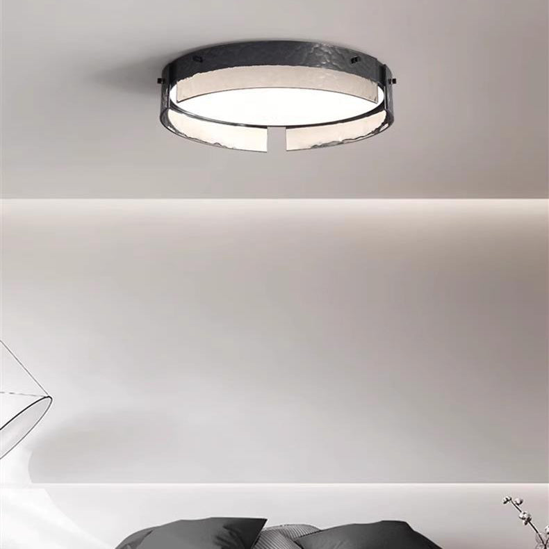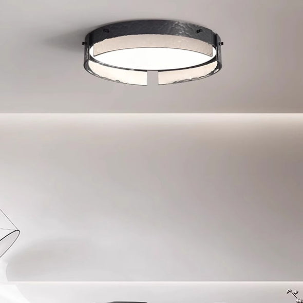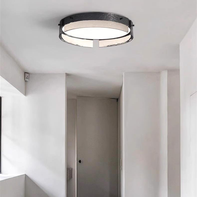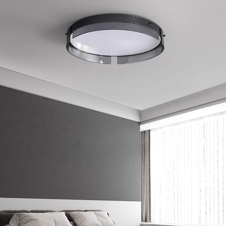مصباح سقف LED دائري أنيق معاصر صناعي مصنوع من الزجاج المصنفر والألومنيوم والأكريليك لغرفة النوم
