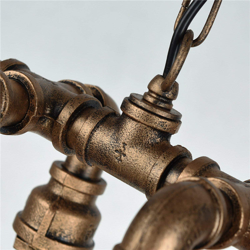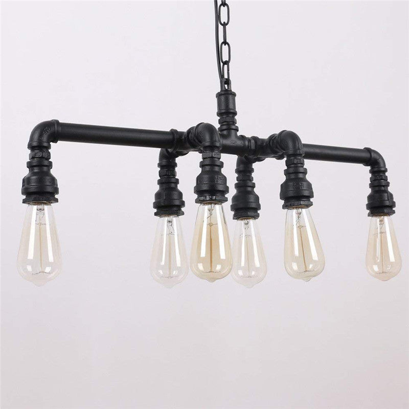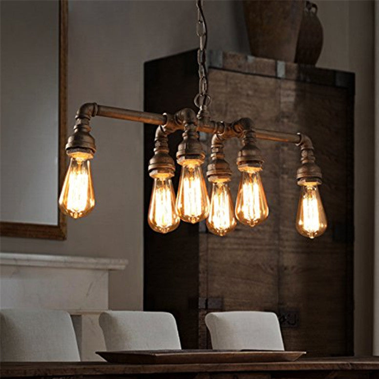 ثريات معاصرة من أنابيب المياه الصناعية الحديدية بستة مصابيح لغرفة الطعام