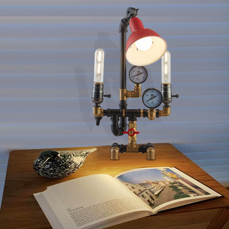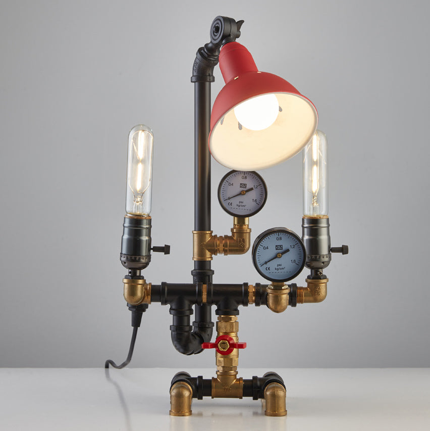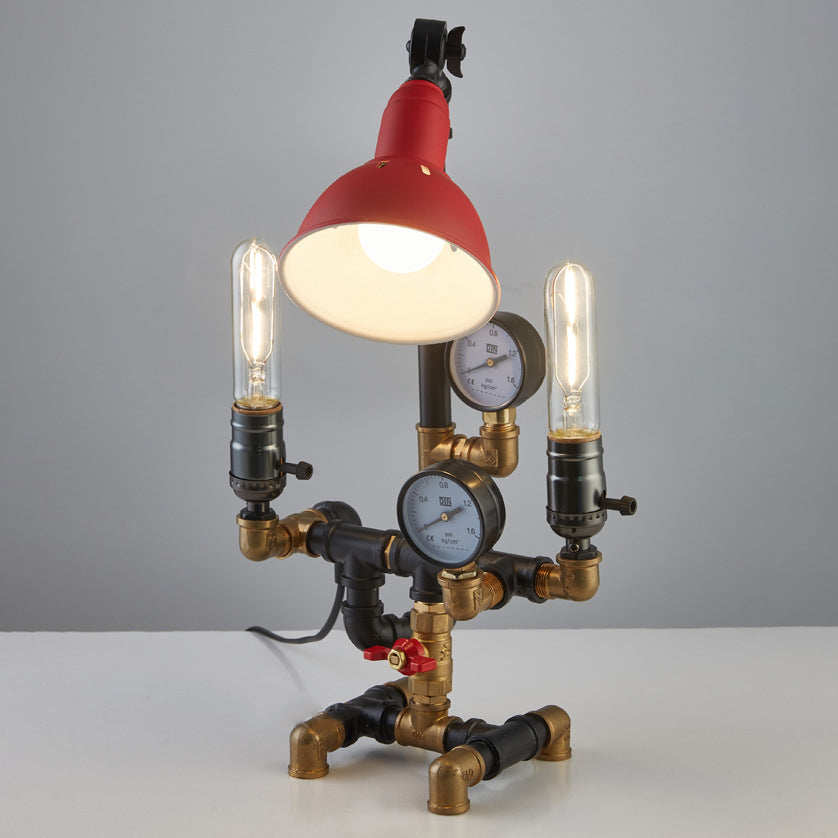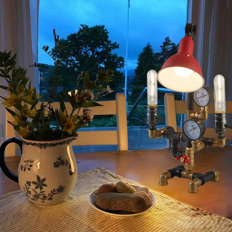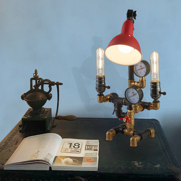Contemporary Industrial Plumbing Robot Aluminum Iron 3-Light Table Lamp For Living Room