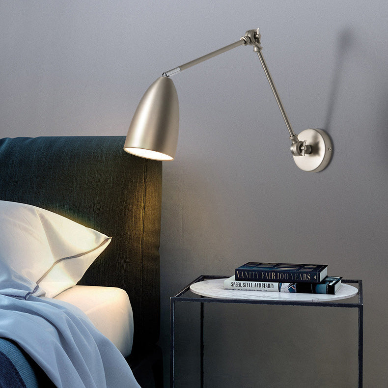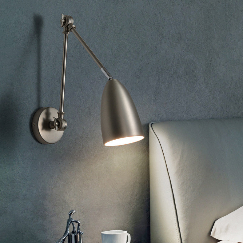 مصباح حائطي صناعي معاصر قابل للسحب مزود بذراع دوارة من الحديد لغرفة النوم