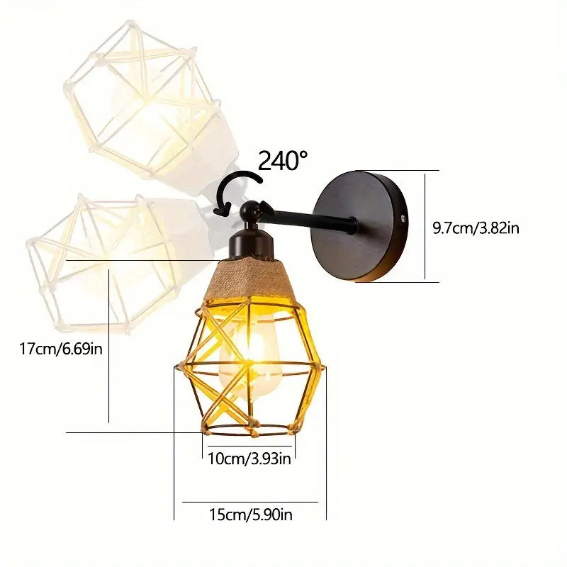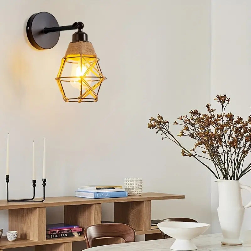مصباح حائط صناعي معاصر مستدير متعدد الأضلاع مصنوع من حبل القنب ومصباح واحد لغرفة المعيشة