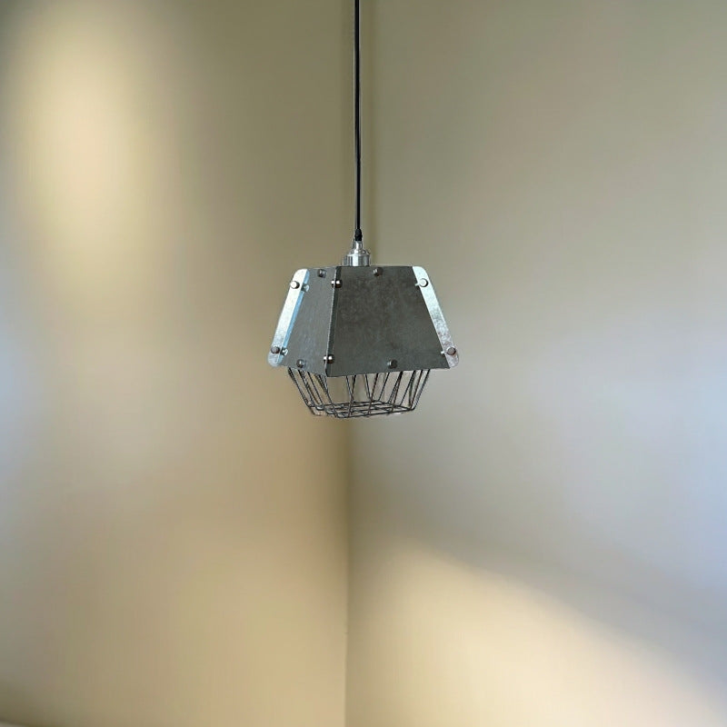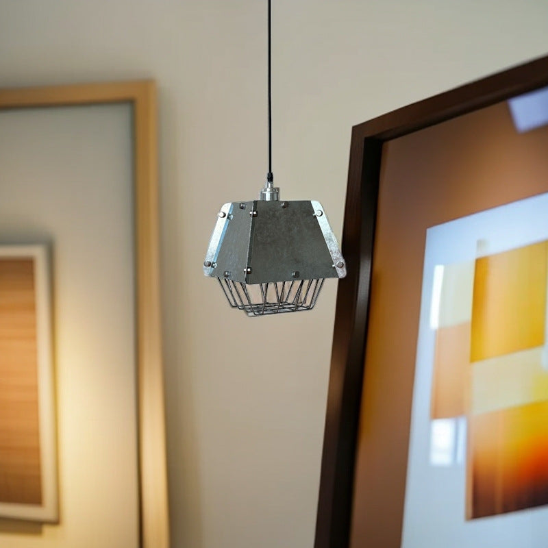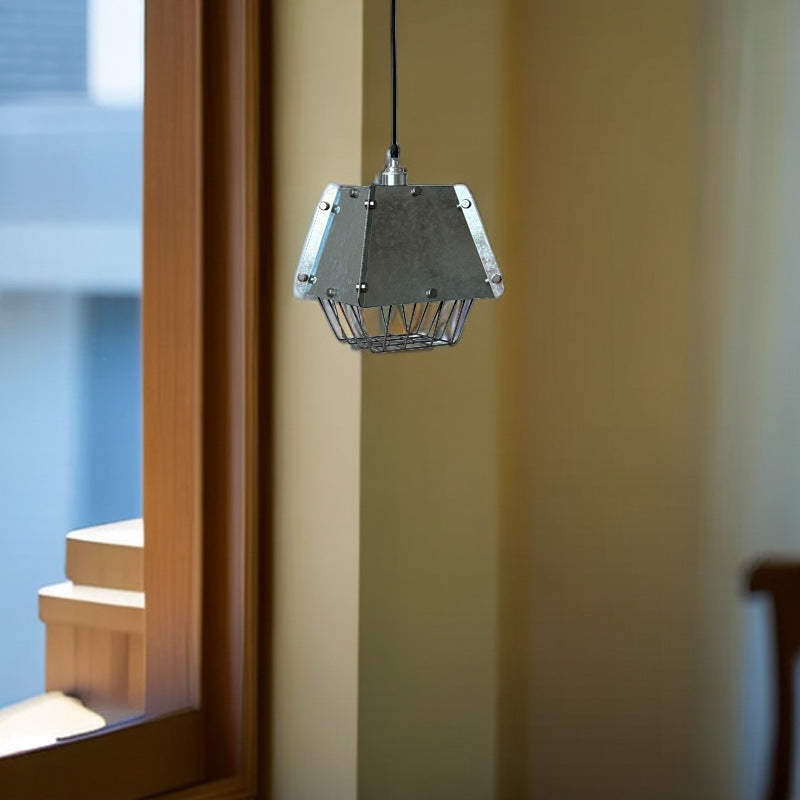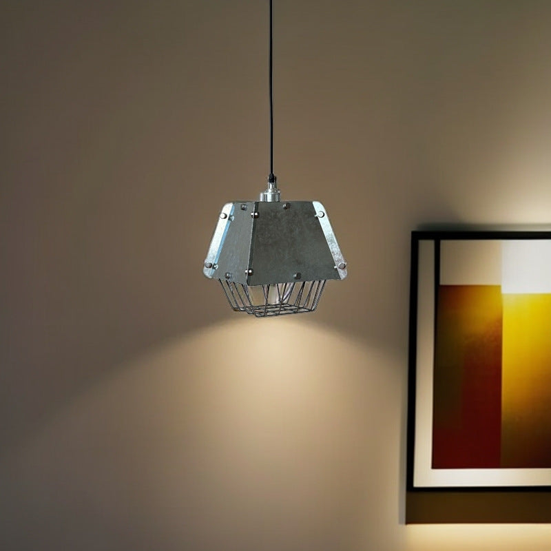 مصباح معلق هندسي صناعي معاصر من الفولاذ المقاوم للصدأ، عمود واحد، لغرفة المعيشة