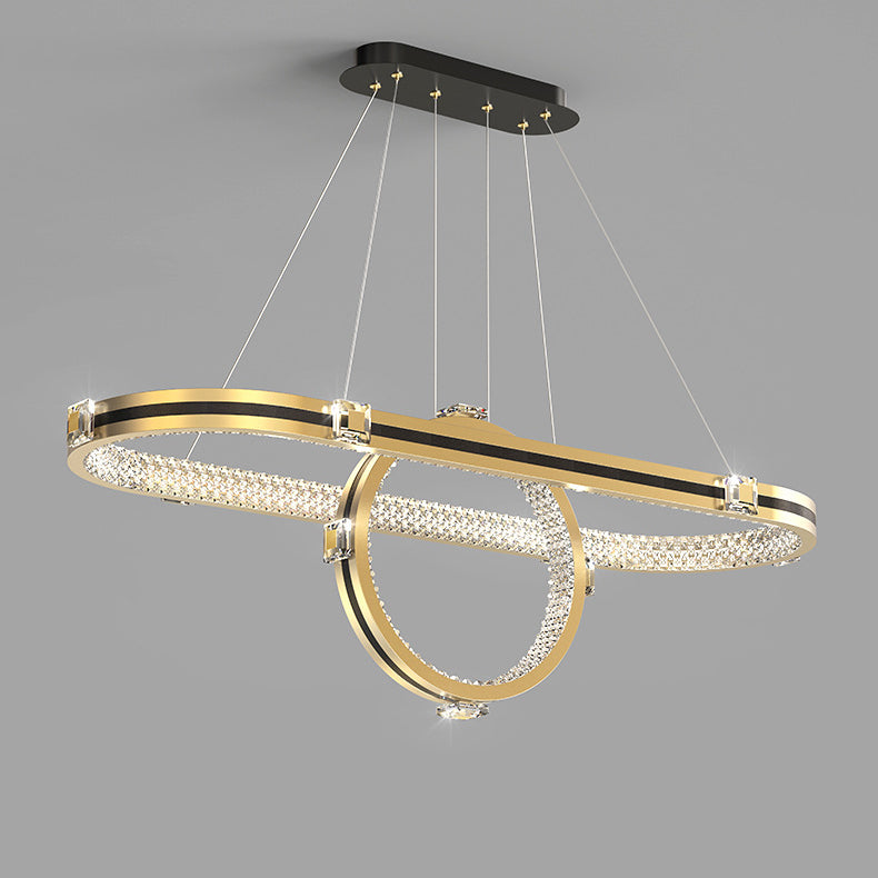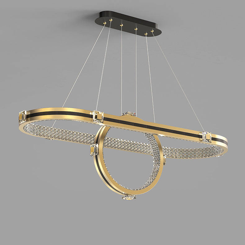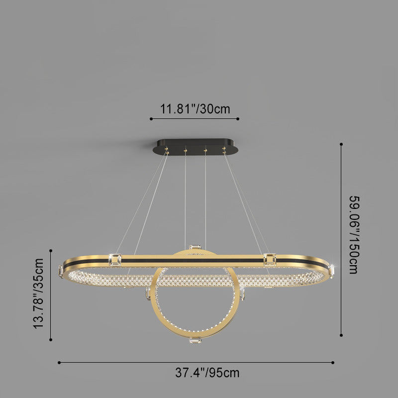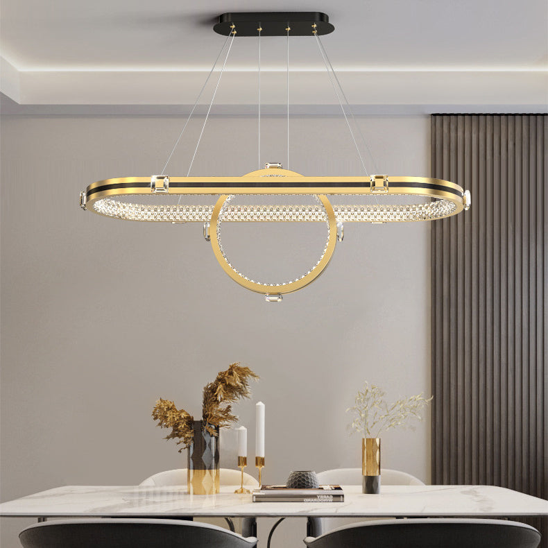 ثريا LED فاخرة معاصرة مصنوعة من الألومنيوم والأكريليك على شكل حلقة بيضاوية لغرفة الطعام