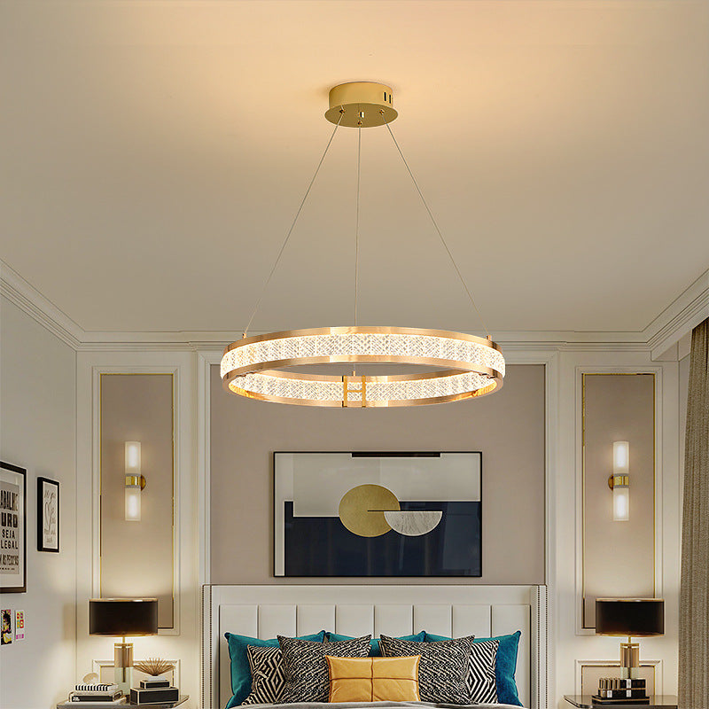ثريا LED دائرية من الكريستال من الألومنيوم الفاخر المعاصر لغرفة الطعام
