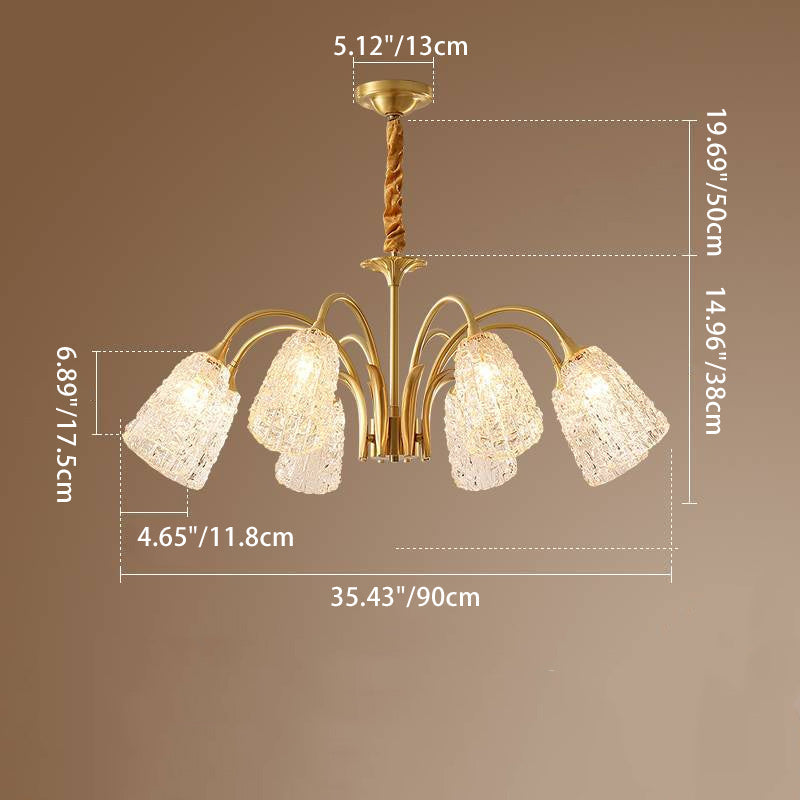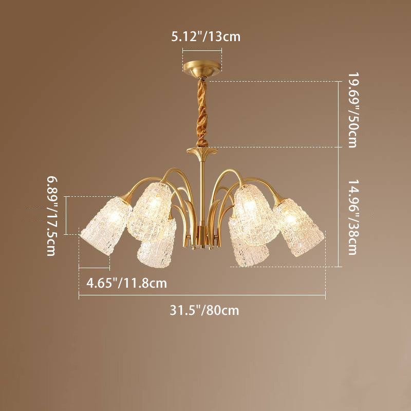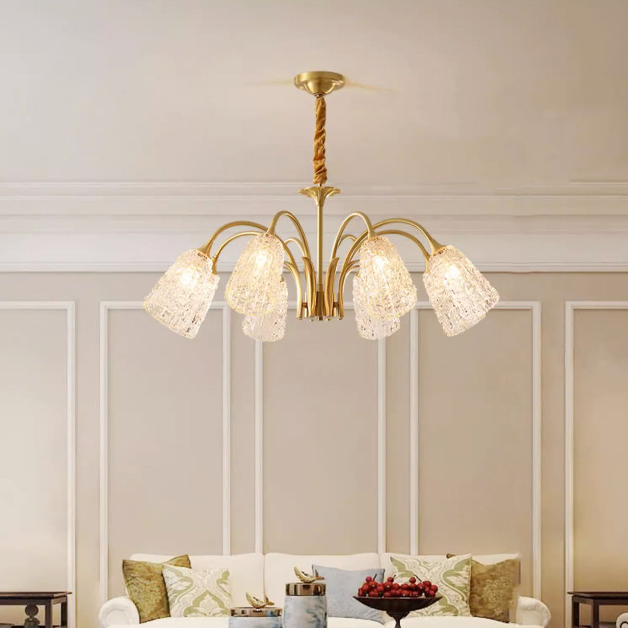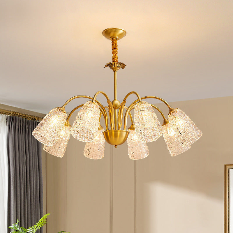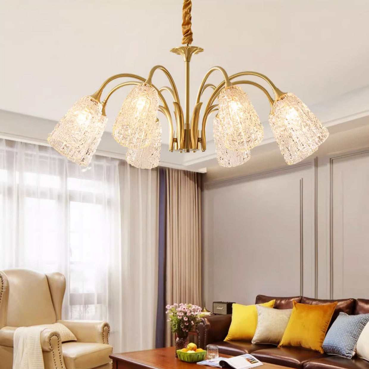 ثريات زجاجية نحاسية معاصرة فاخرة ذات 3/5/6/8/10 مصابيح لغرفة المعيشة