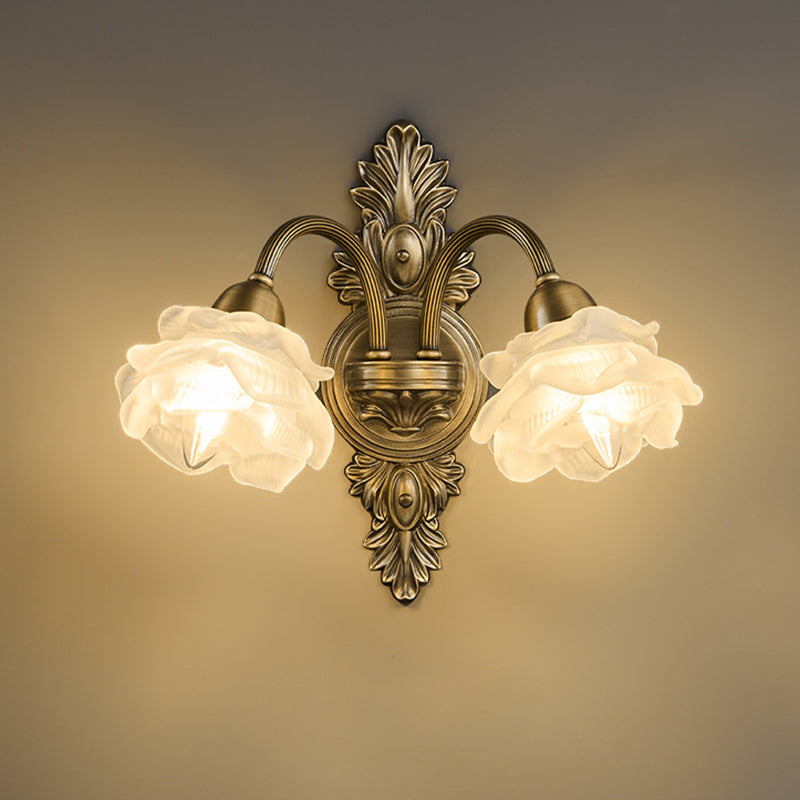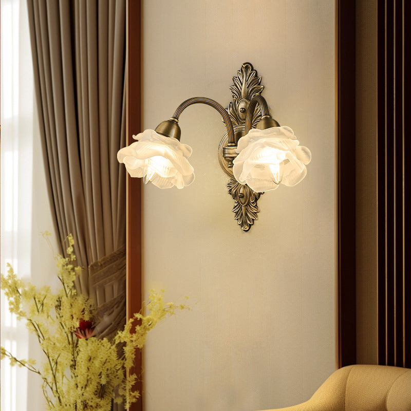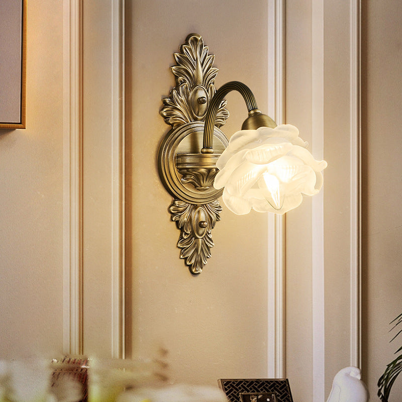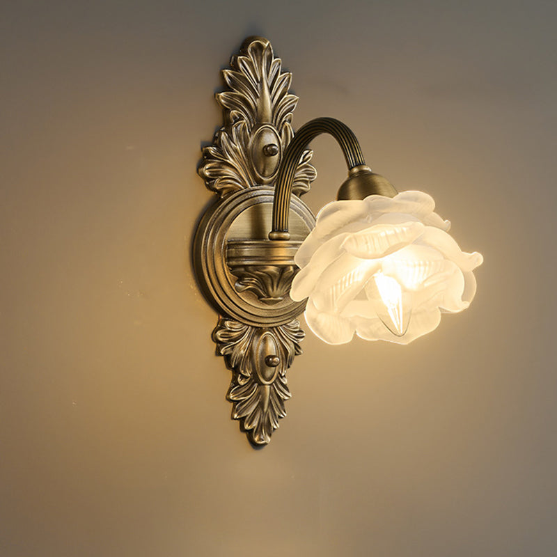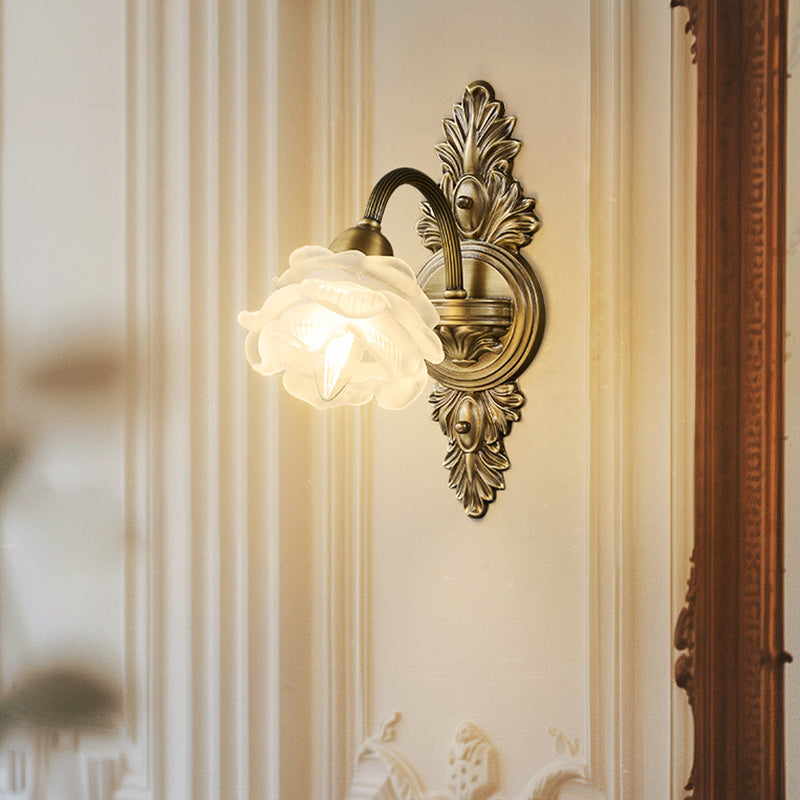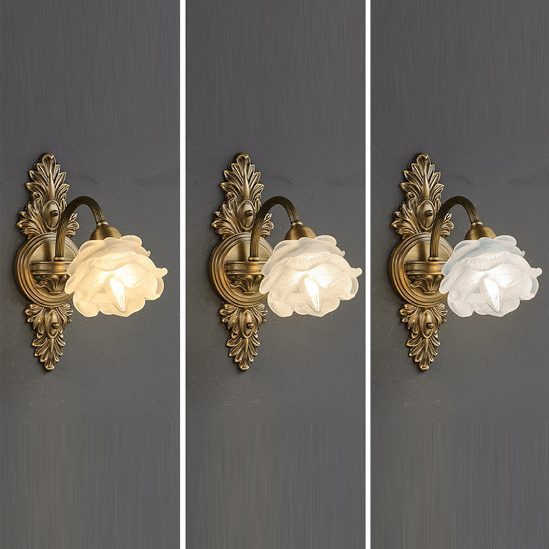مصباح حائط معاصر فاخر من النحاس والزجاج على شكل زهرة بنصف ضوء لغرفة المعيشة