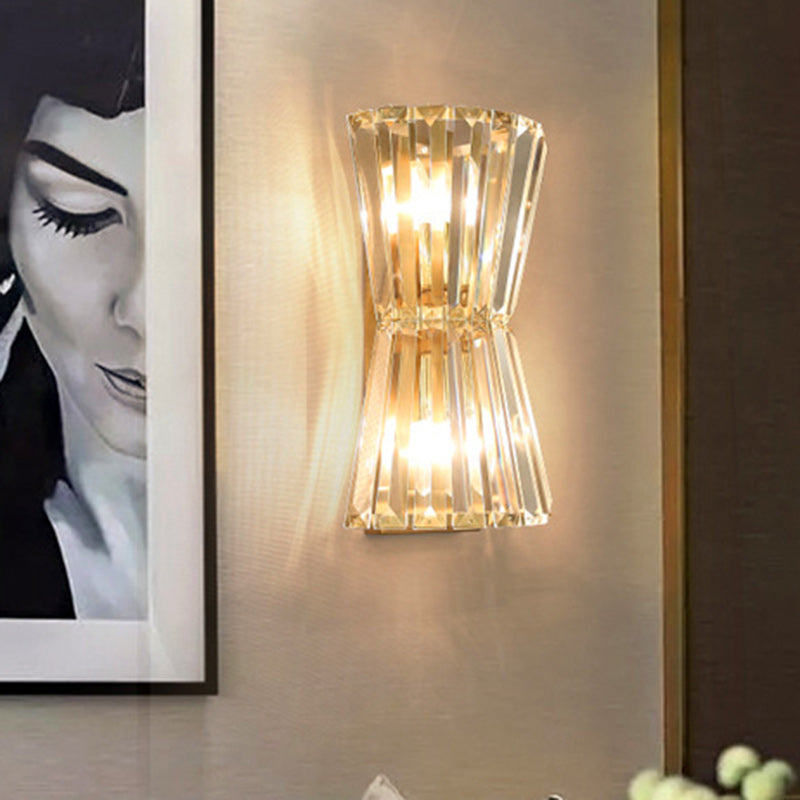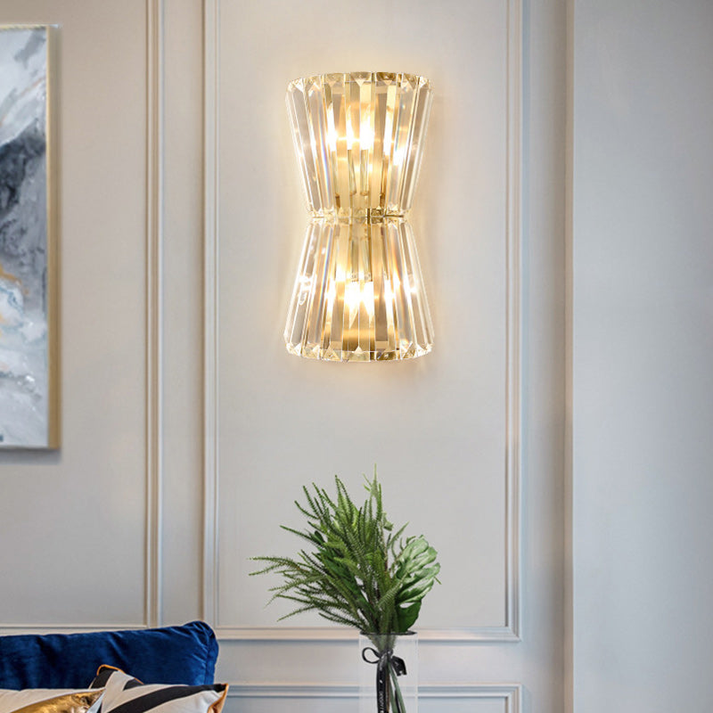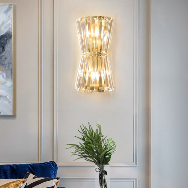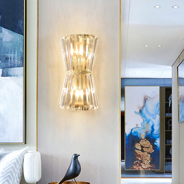 مصباح حائط أسطواني معاصر فاخر من الفولاذ الكريستالي مزود بمصباحين لغرفة المعيشة