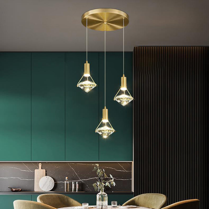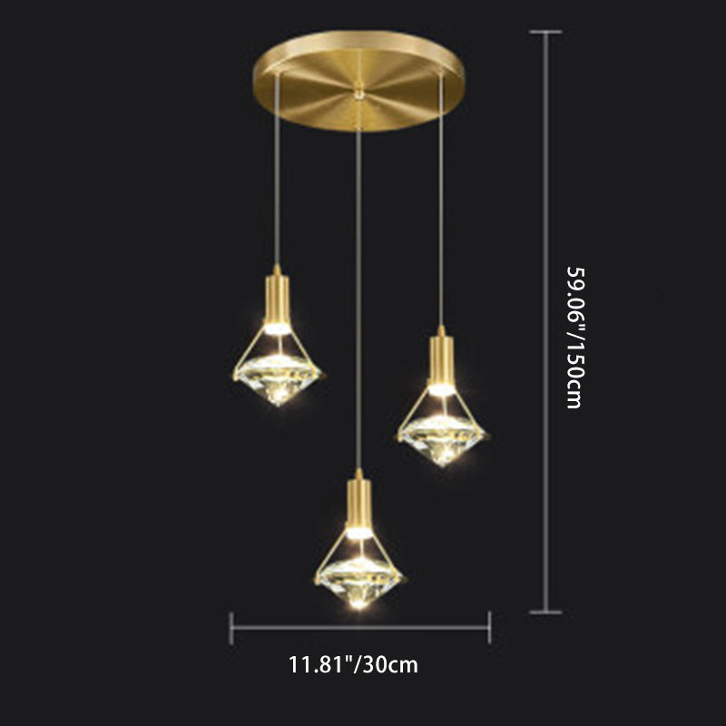 ثريا كريستال LED نحاسية كاملة على شكل ماسي فاخرة معاصرة لغرفة المعيشة
