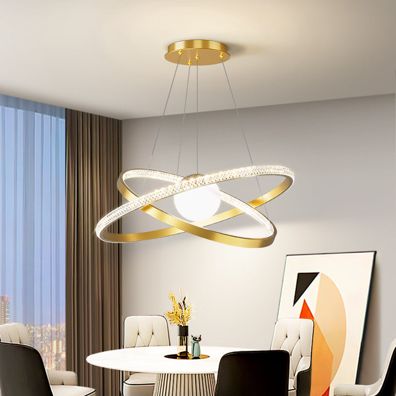 ثريا LED من السيليكون الحديدي الدائري المزدوج الفاخرة المعاصرة لغرفة المعيشة