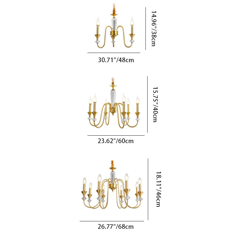 ثريا معاصرة فاخرة من النحاس الكريستالي بالكامل، ثريا 3/6/8 مصابيح لغرفة المعيشة