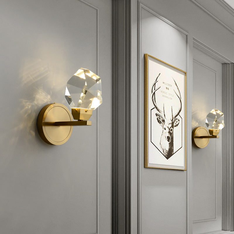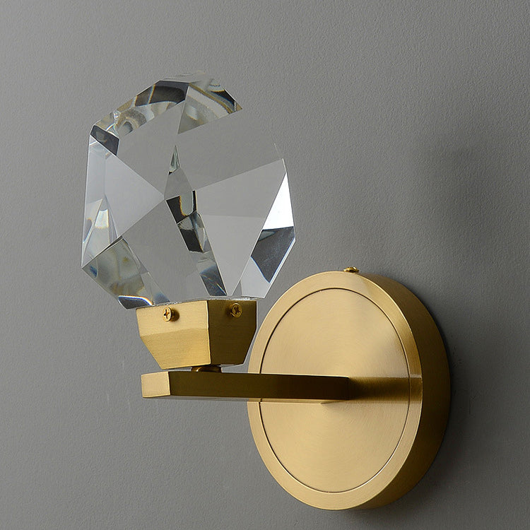 مصباح حائط LED معاصر فاخر مصنوع من النحاس والكريستال والحجر لغرفة المعيشة