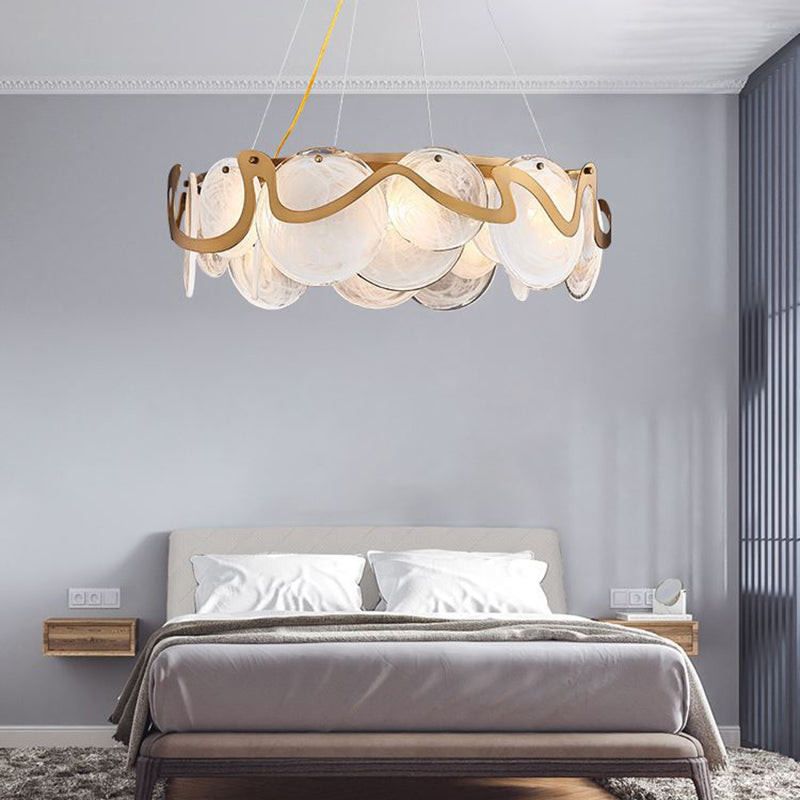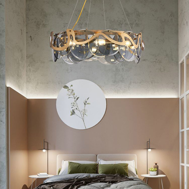 ثريا معاصرة فاخرة بإطار حديدي وقرص زجاجي و8/10 مصابيح لغرفة النوم