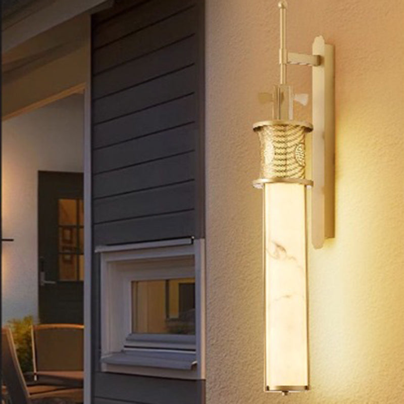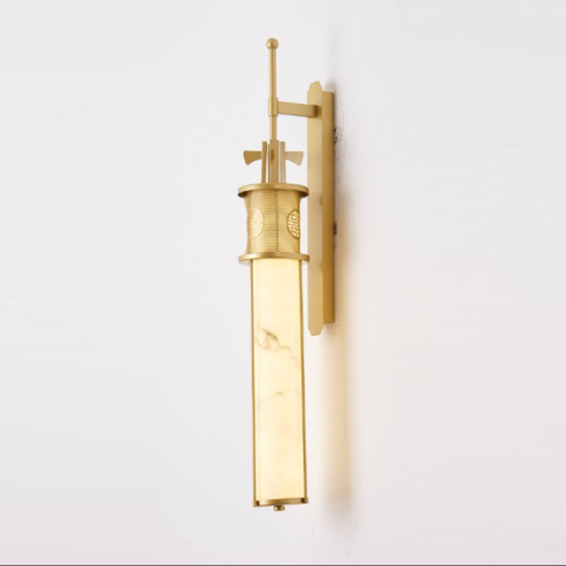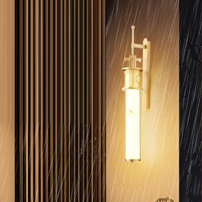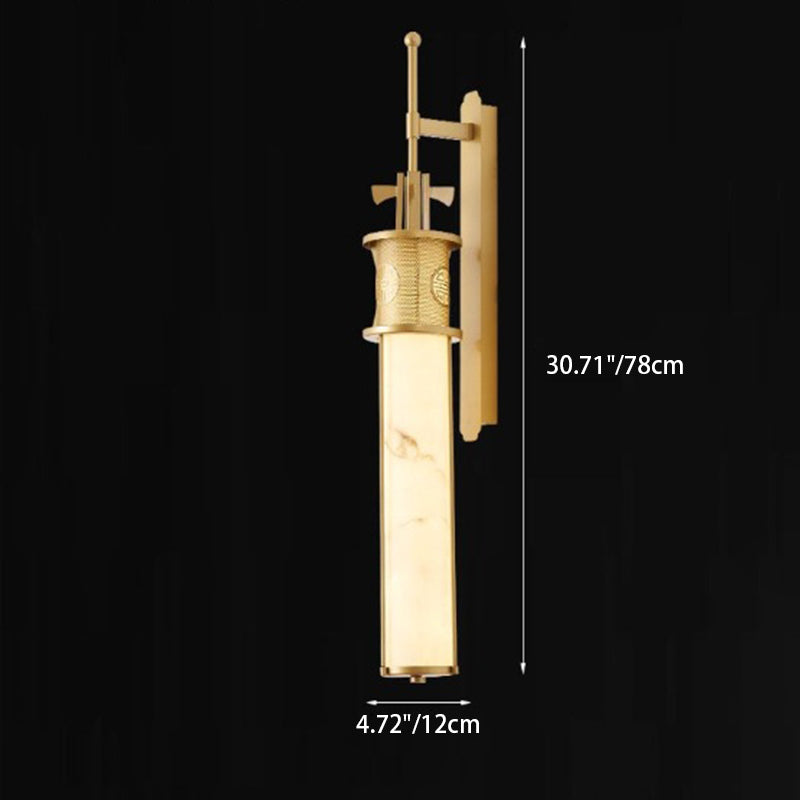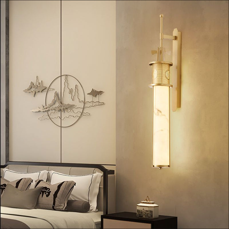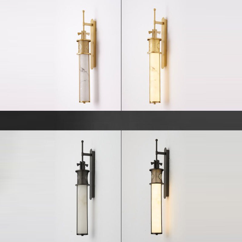 مصباح حائط LED فاخر معاصر مصنوع من الحديد طويل العمود مصنوع من الرخام مع ظل أسطواني لغرفة المعيشة