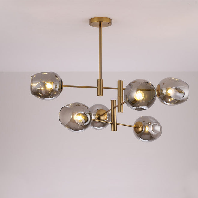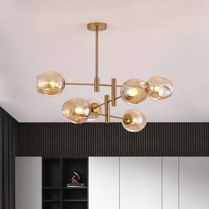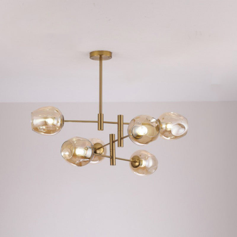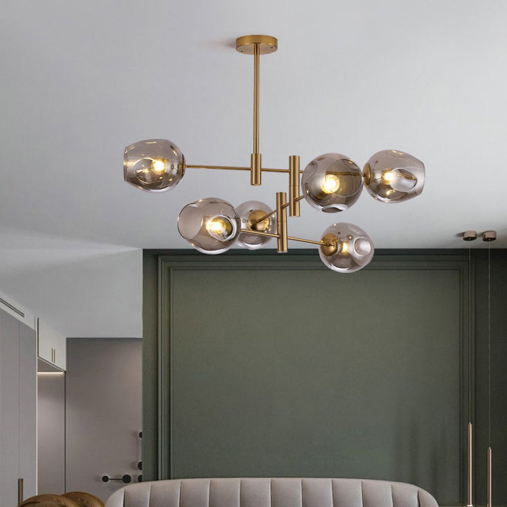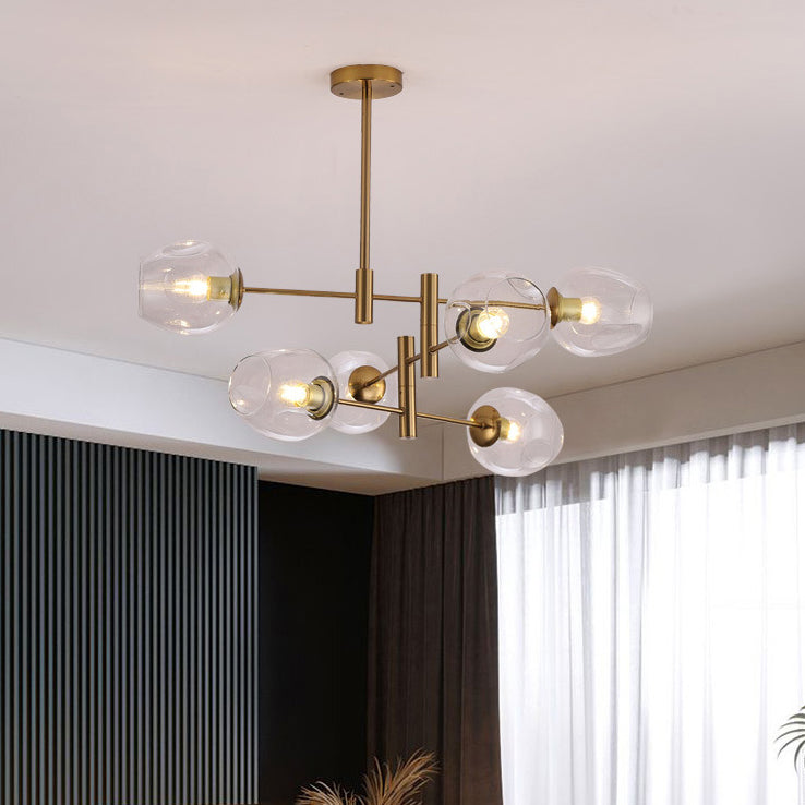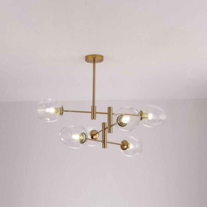 ثريا زجاجية دائرية من الحديد بتصميم عصري فاخر، مكونة من 6 مصابيح لغرفة المعيشة