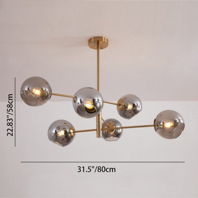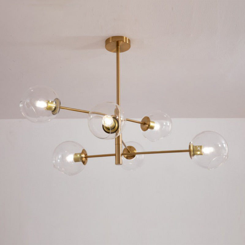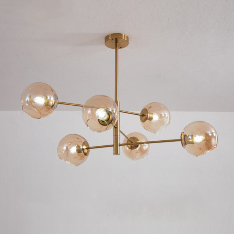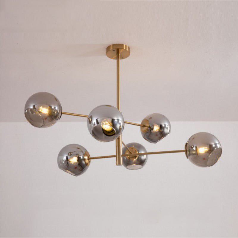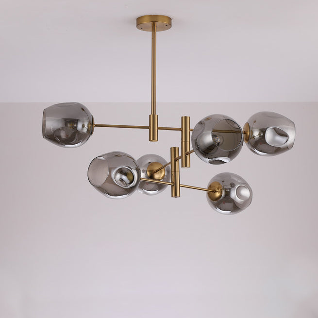 ثريا زجاجية دائرية من الحديد بتصميم عصري فاخر، مكونة من 6 مصابيح لغرفة المعيشة