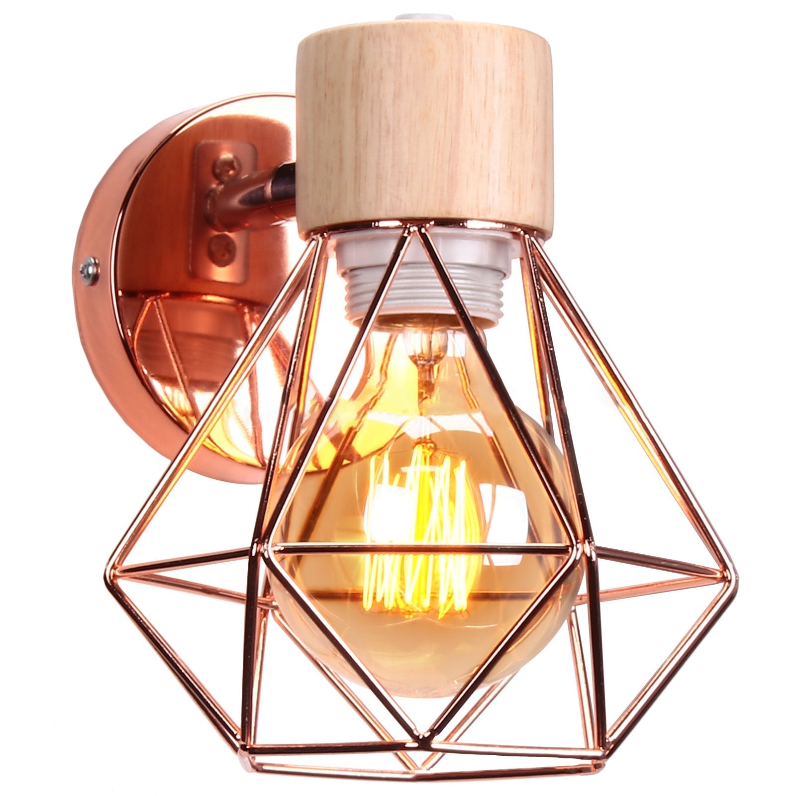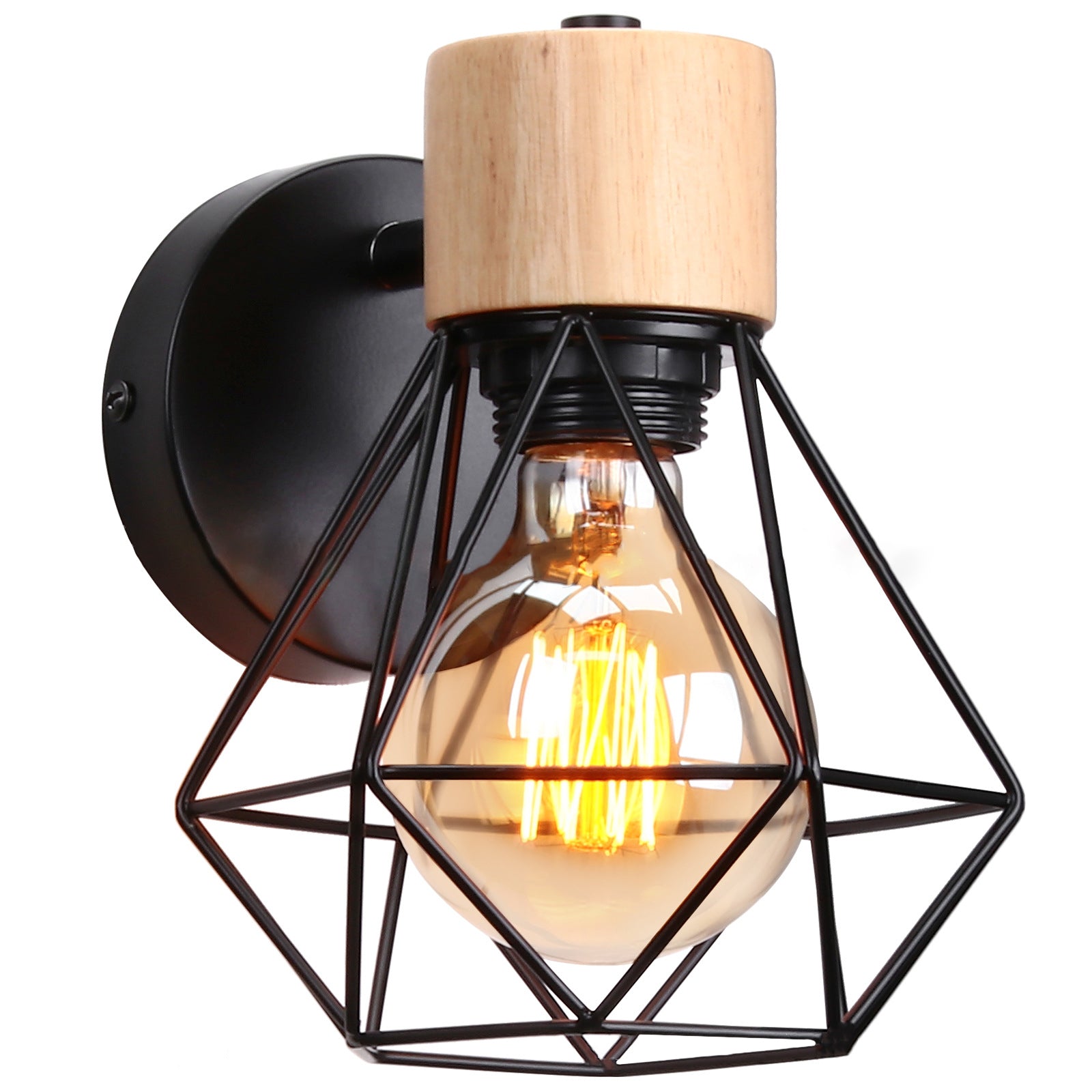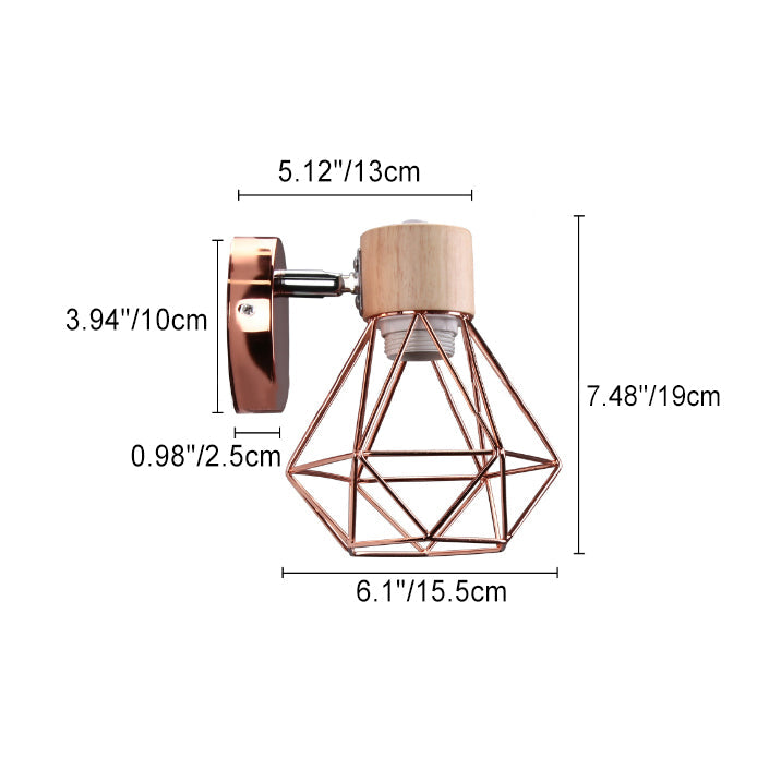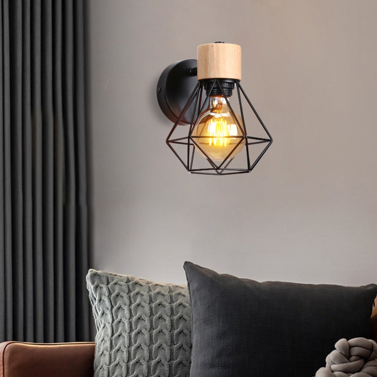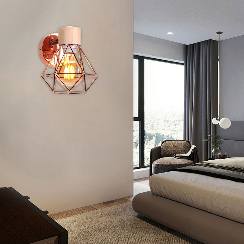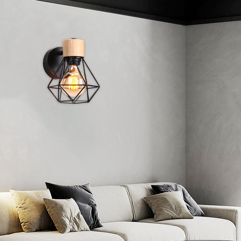 مصباح حائط معاصر فاخر من الحديد والخشب متعدد الأضلاع ومصباح واحد لغرفة النوم