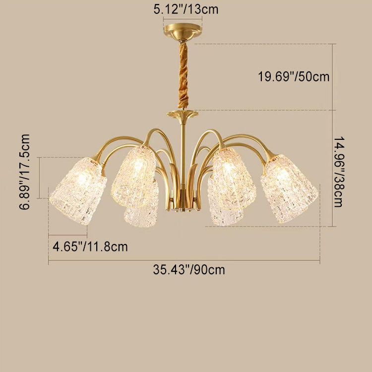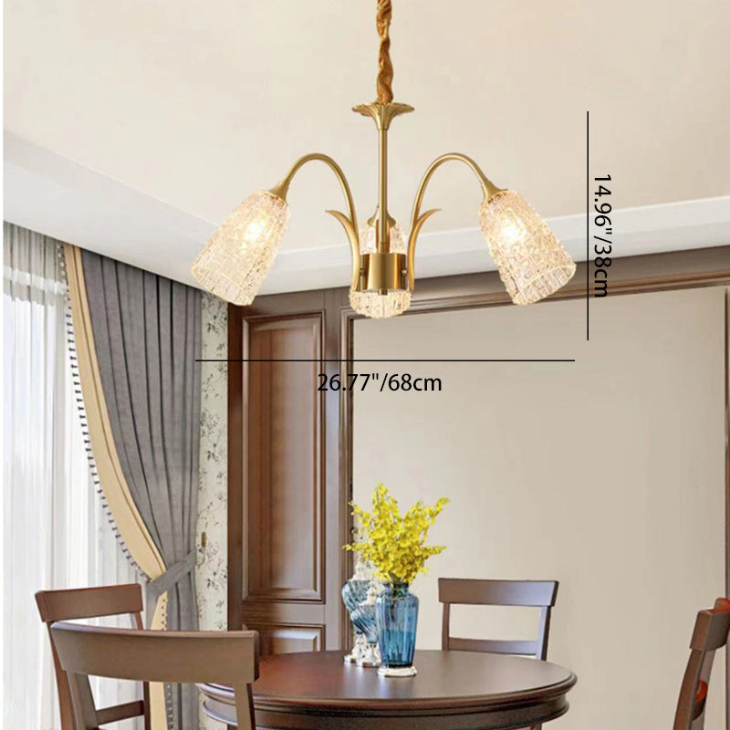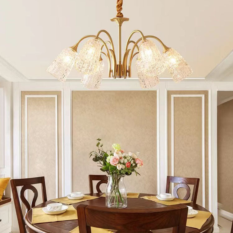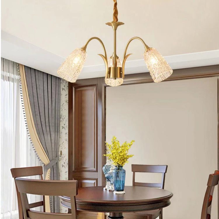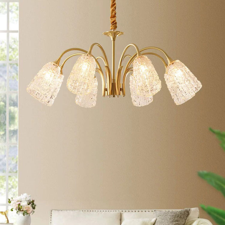 ثريا زجاجية دائرية معاصرة فاخرة من النحاس مكونة من 3/5/6/8 مصابيح لغرفة المعيشة