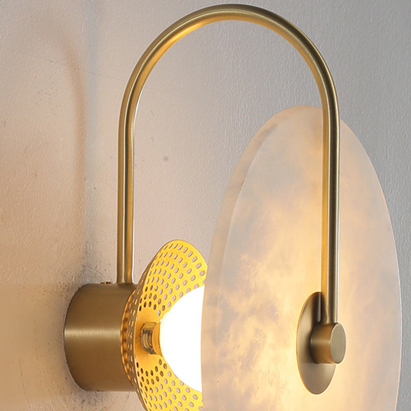 مصباح حائط عصري فاخر مستدير من النحاس الحجري مزود بمصباح واحد لغرفة المعيشة