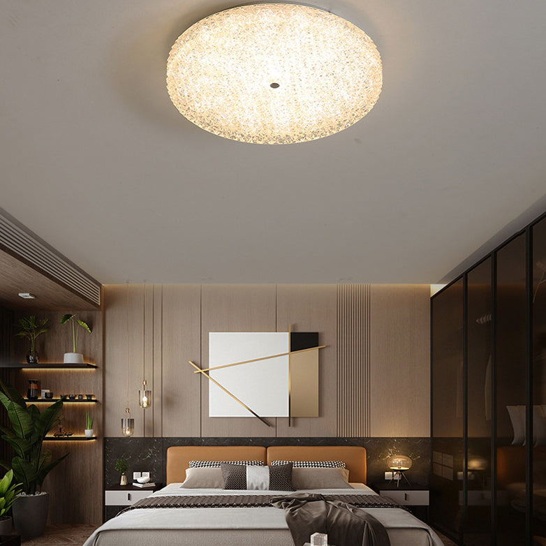 مصباح سقف LED شبه مسطح مع غطاء زجاجي كريستالي دائري فاخر معاصر لغرفة النوم