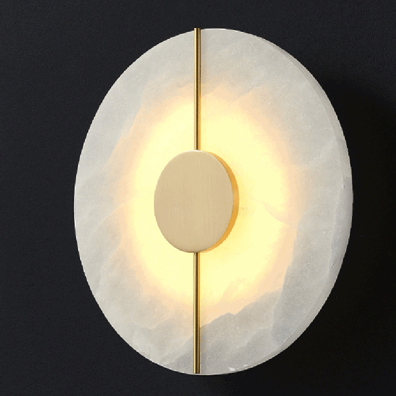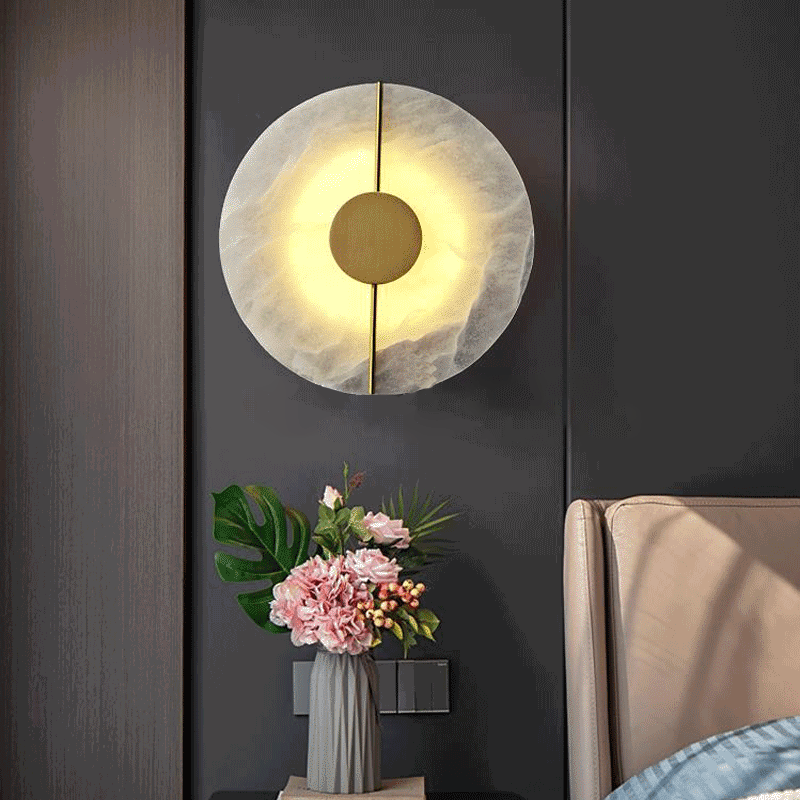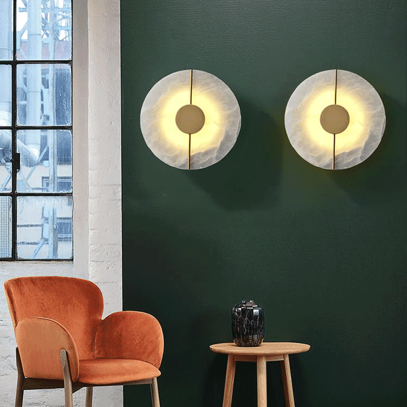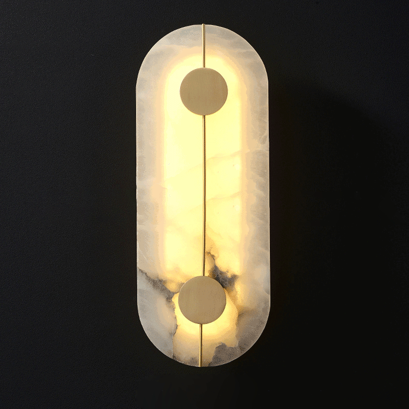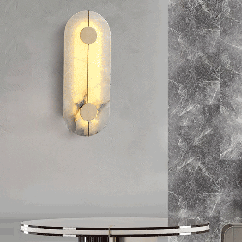 مصباح حائط LED عصري فاخر مستدير بيضاوي من الرخام والنحاس لغرفة المعيشة