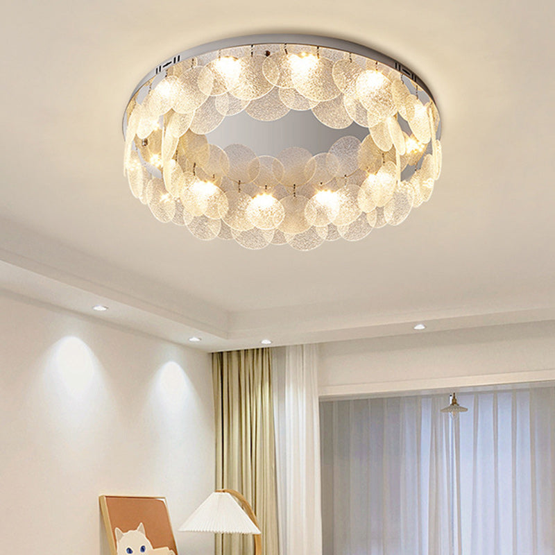 مصباح سقف LED دائري فاخر معاصر من الفولاذ المقاوم للصدأ والزجاج لغرفة المعيشة