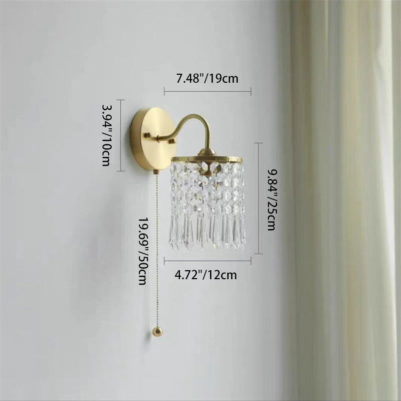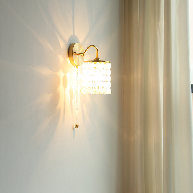مصباح حائط معاصر فاخر بقاعدة دائرية من الحديد الكريستالي مزود بمصباح واحد لغرفة النوم