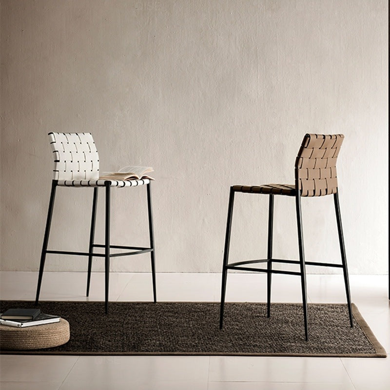 Contemporary Luxury Square Faux Saddle Leather Metal Bar Stool Backrest Footrest For Dining Room