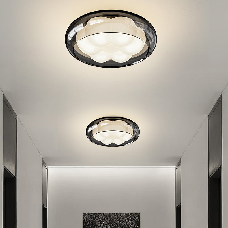 صُنع هذا المصباح السقفي LED العصري المُدمج من مواد مصبوبة بالدوران، والزجاج، والحديد، وهو يوفر نفاذية عالية للضوء بلمسة نهائية رمادية دخانية ناعمة. يوفر تصميمه الدائري إضاءة ناعمة وواسعة الطيف، مثالية لغرف النوم، والمداخل، ومساحات المعيشة التي تبحث عن الأناقة البسيطة.