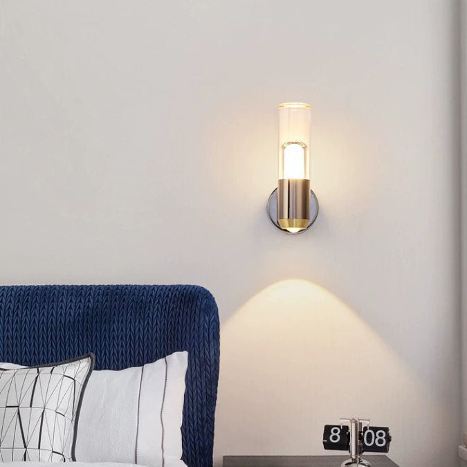 مصباح حائط LED أسطواني معاصر من الألومنيوم والحديد لغرفة النوم