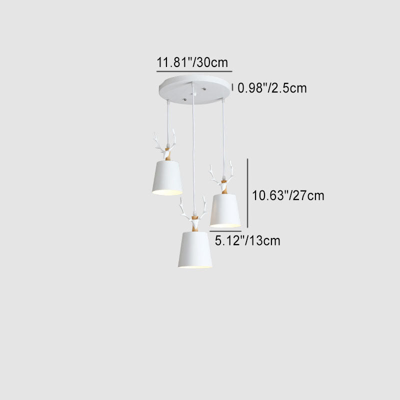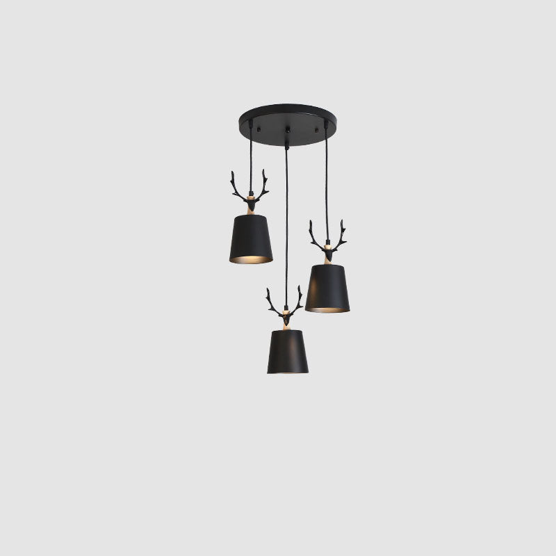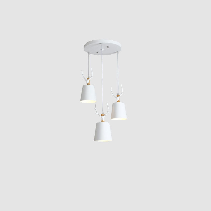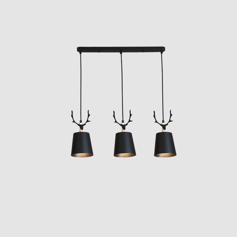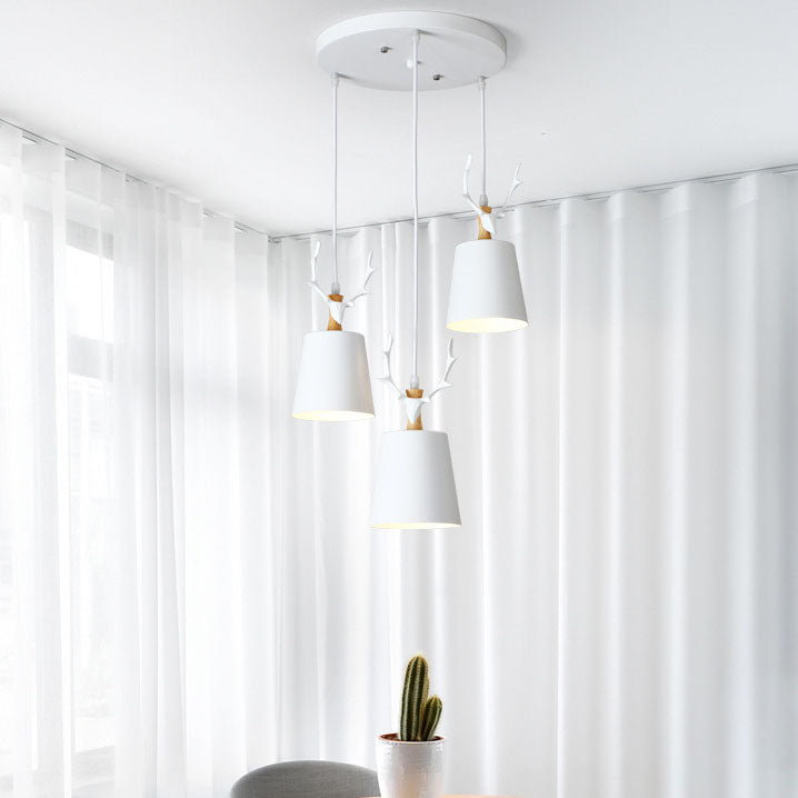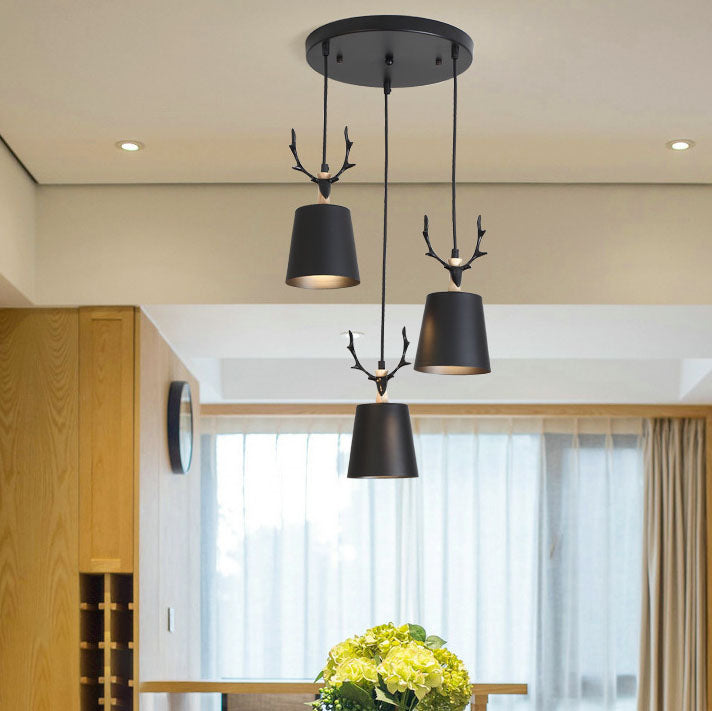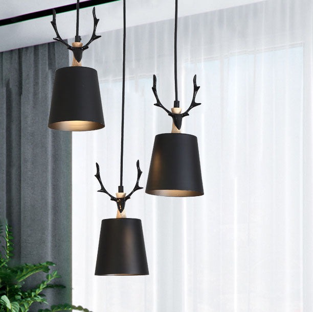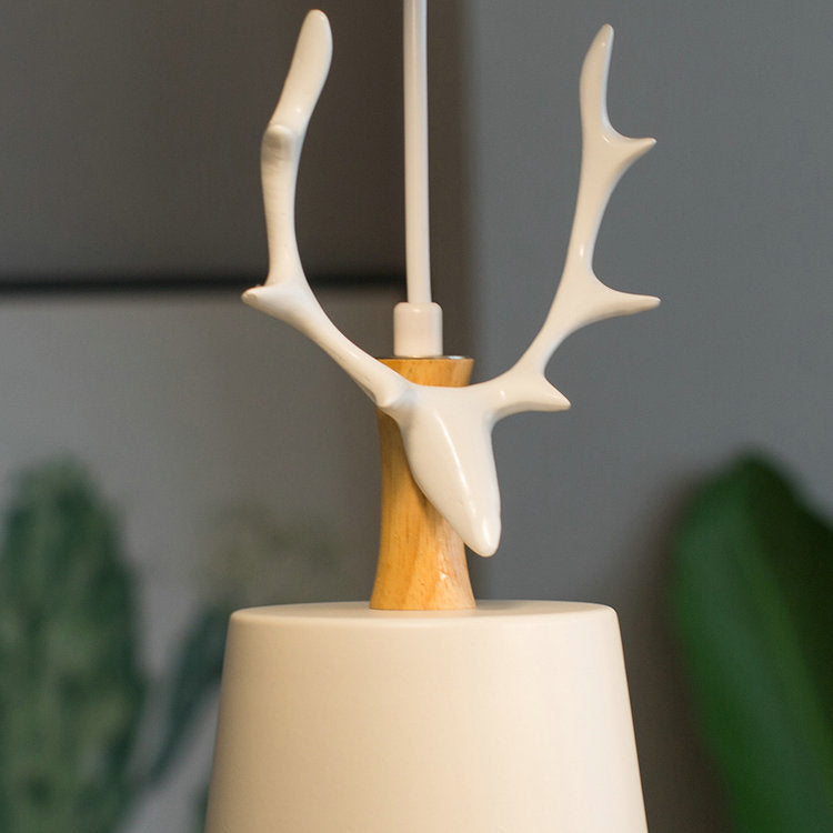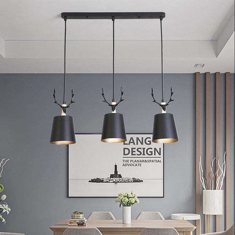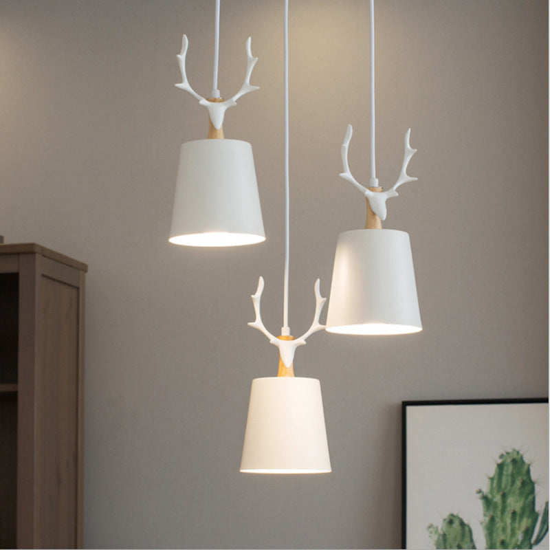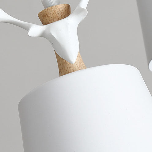 ثريا جزيرة خشبية معاصرة من الحديد على شكل قرن الغزال بتصميم نورديك مع غطاء خشبي وإضاءة ثلثية لغرفة المعيشة