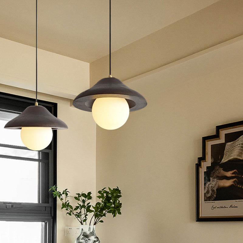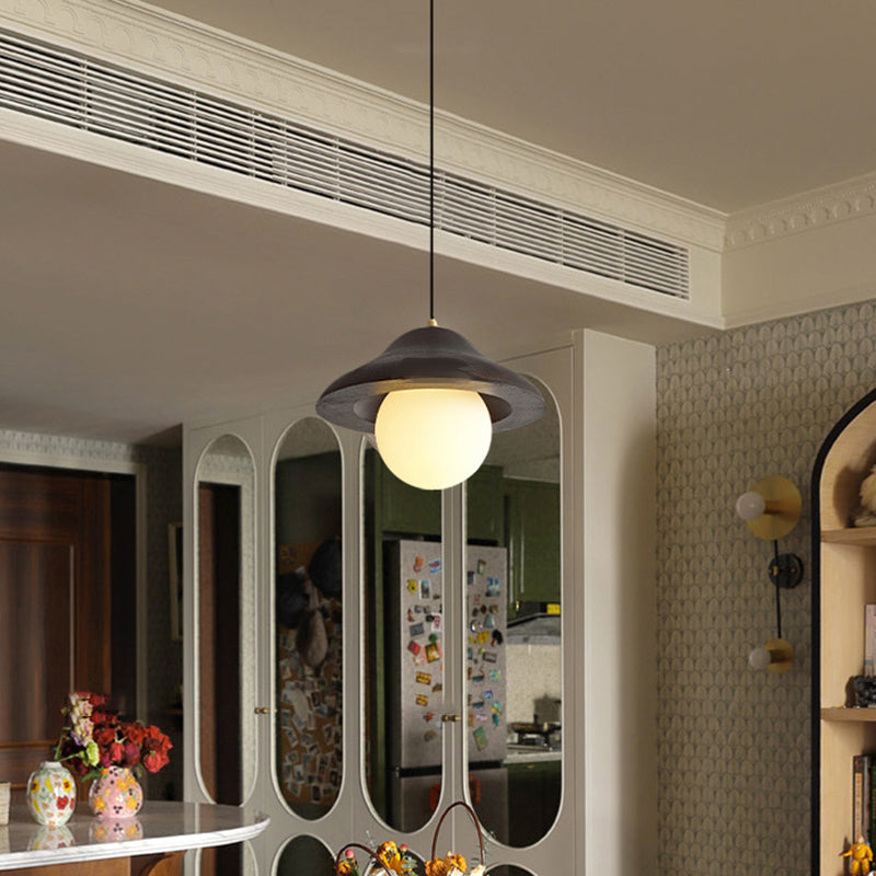 مصباح معلق معاصر على شكل وعاء من خشب الدردار، زجاجي، مزود بمصباح واحد لغرفة الطعام