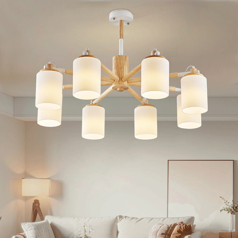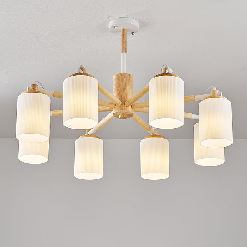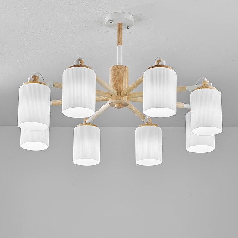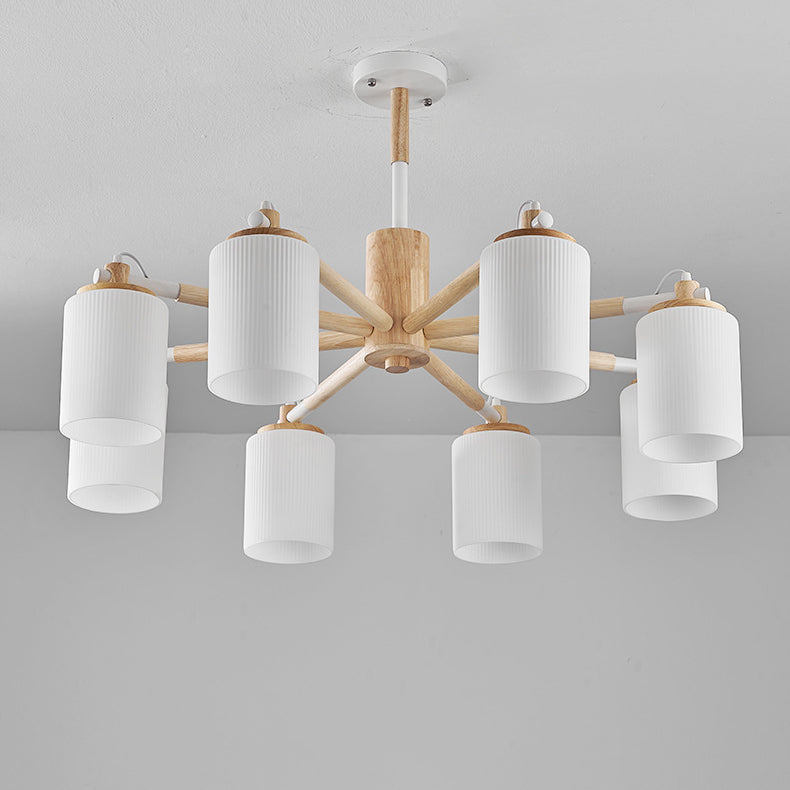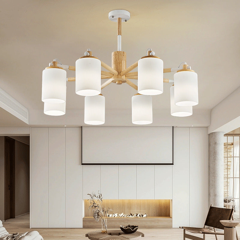 ثريا معاصرة من خشب المطاط والزجاج، بثمانية مصابيح، بتصميم أسطواني على الطراز الاسكندنافي لغرفة المعيشة