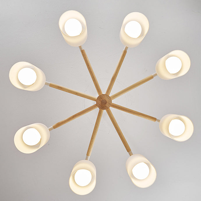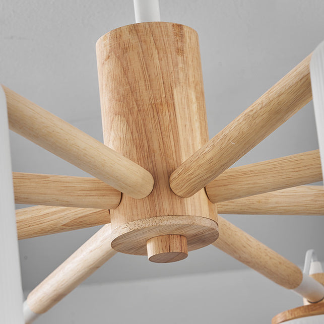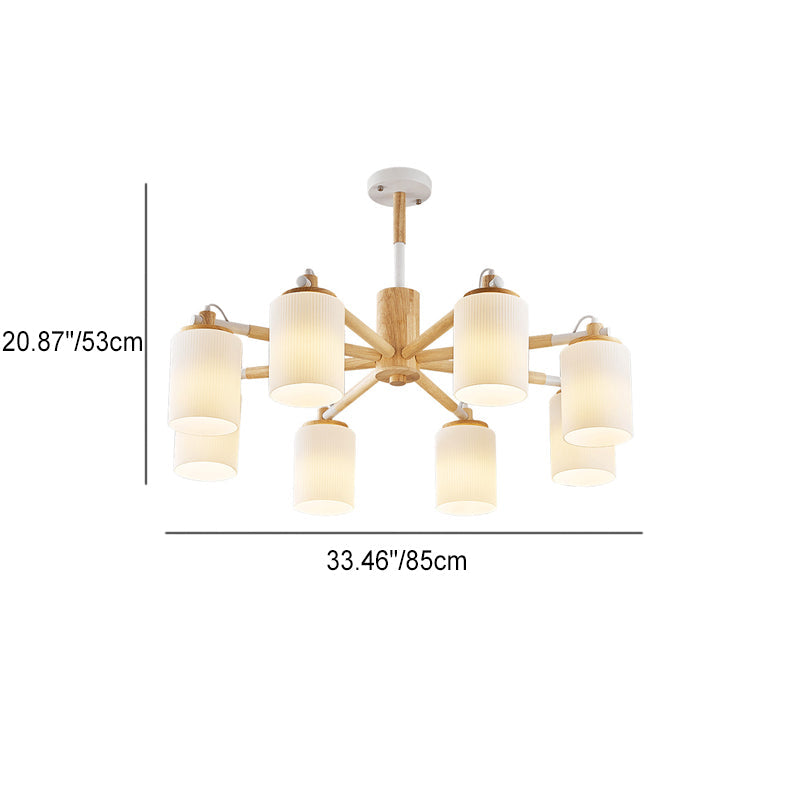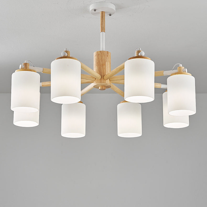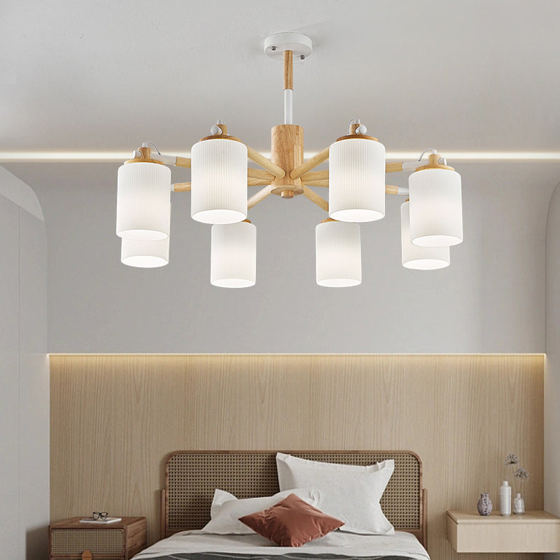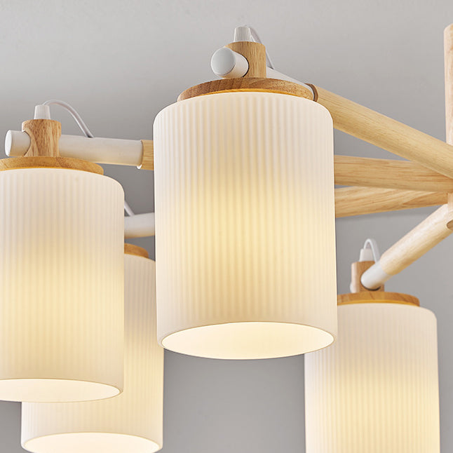 ثريا معاصرة من خشب المطاط والزجاج، بثمانية مصابيح، بتصميم أسطواني على الطراز الاسكندنافي لغرفة المعيشة