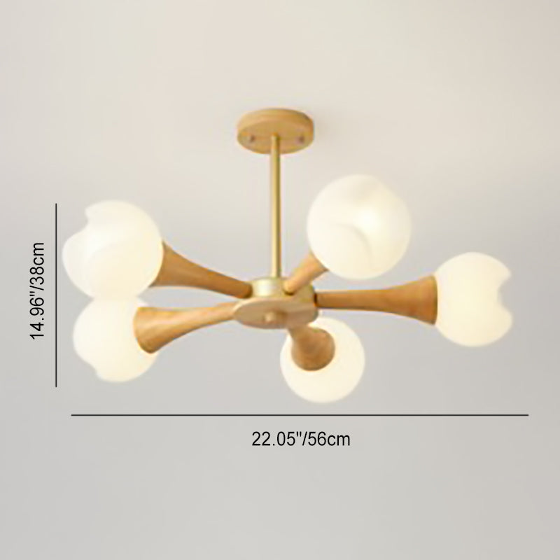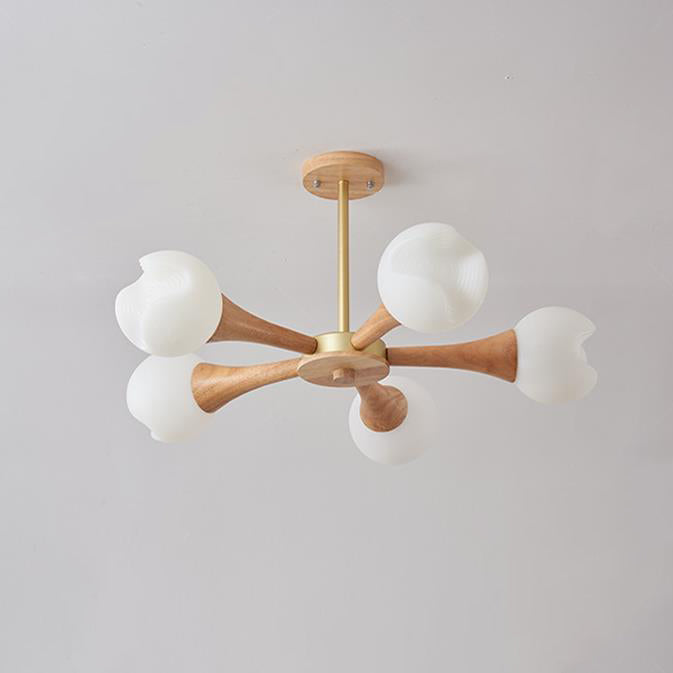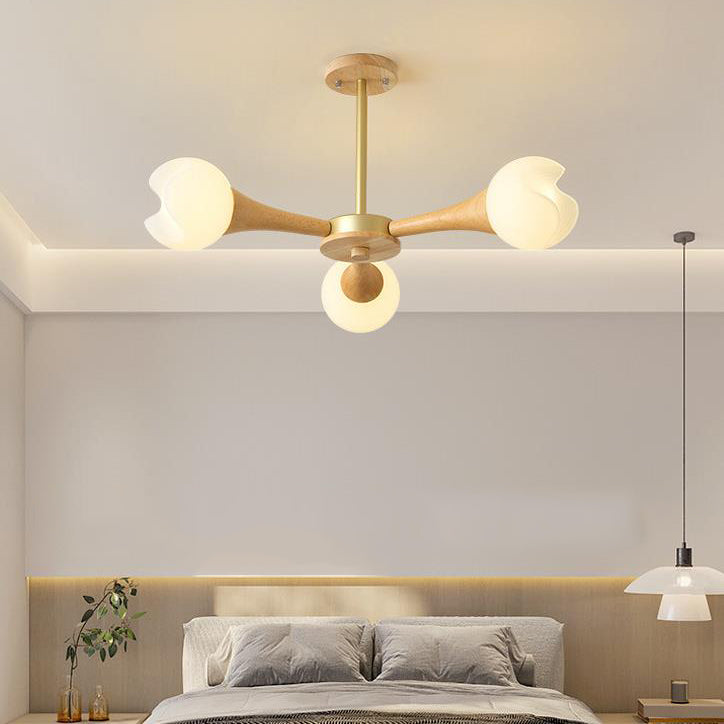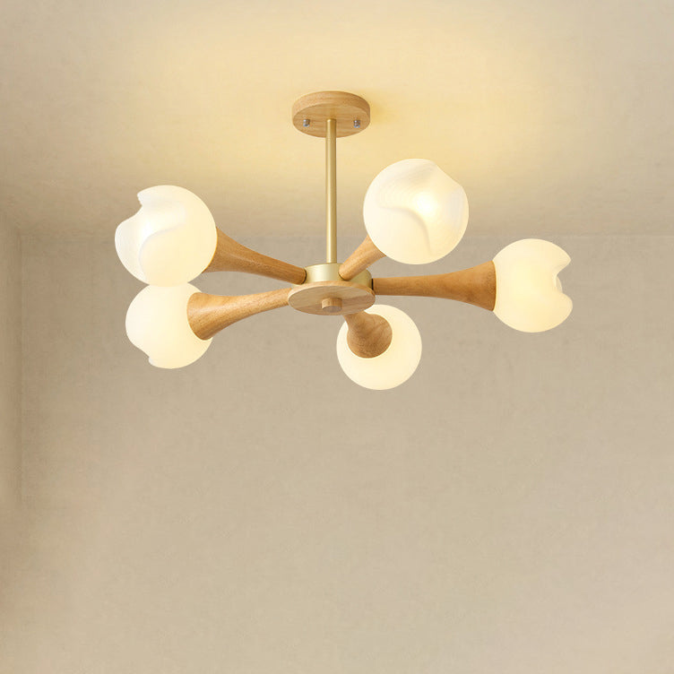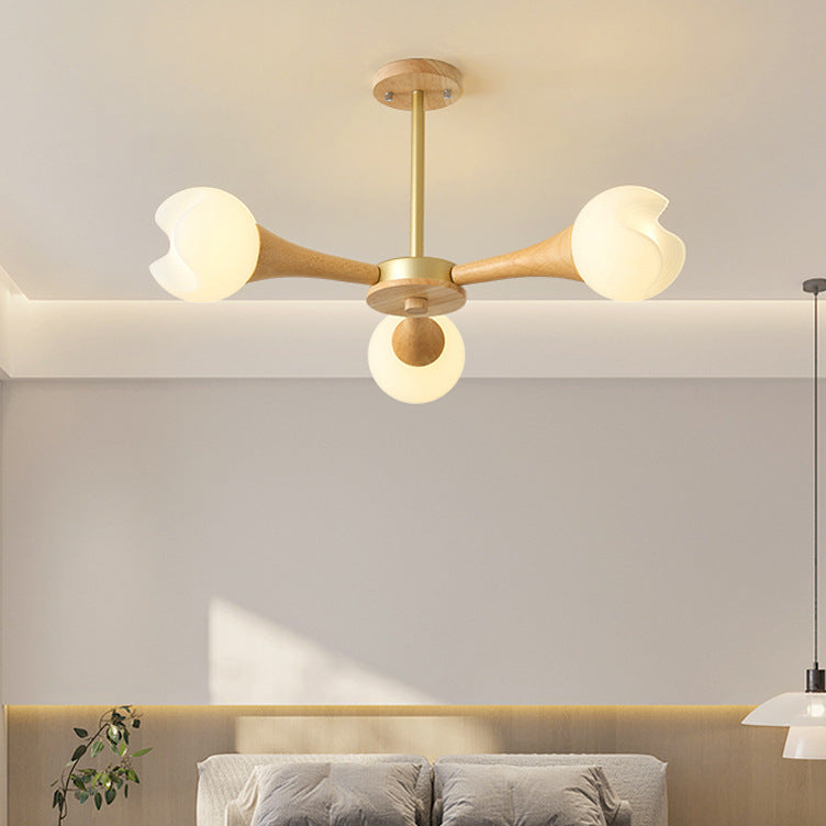 ثريا معاصرة من البلاستيك على شكل فرع زهرة من خشب المطاط لغرفة المعيشة، 3/5 ضوء