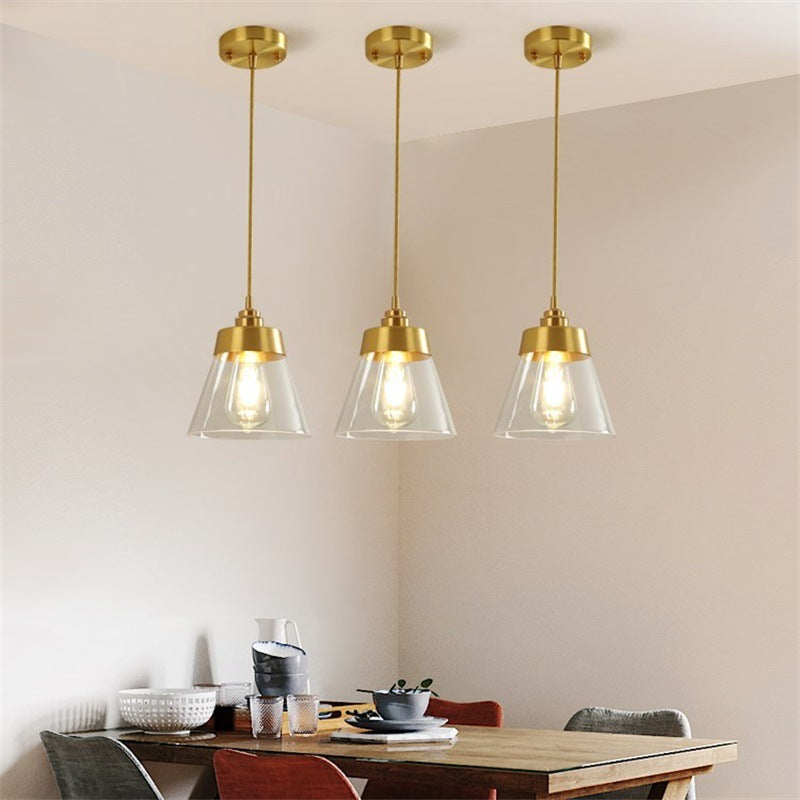 مصباح معلق مخروطي معاصر من النحاس والزجاج بتصميم نورديك، مناسب لغرفة النوم وغرفة المعيشة وغرفة الطعام