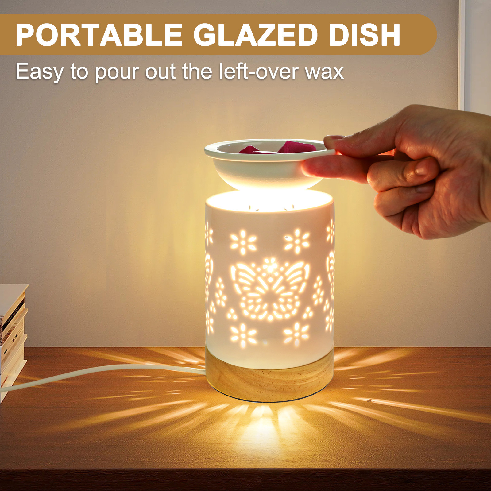 Contemporary Nordic Ceramic Wood Letter Butterfly Hollowed Cylinder 1-Light Melting Wax Table Lamp For Bedside