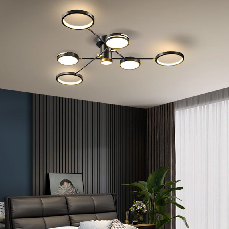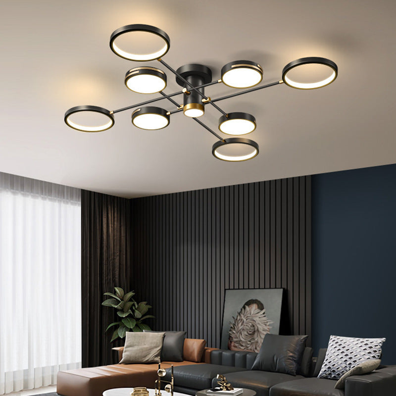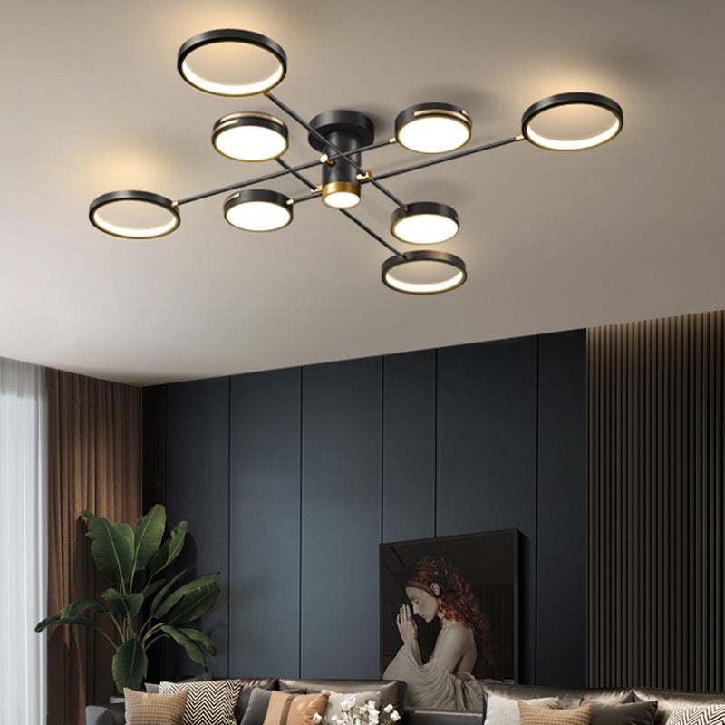 ثريا LED معاصرة من الحديد والأكريليك بتصميم دوائر نورديك لغرفة المعيشة