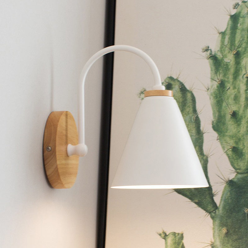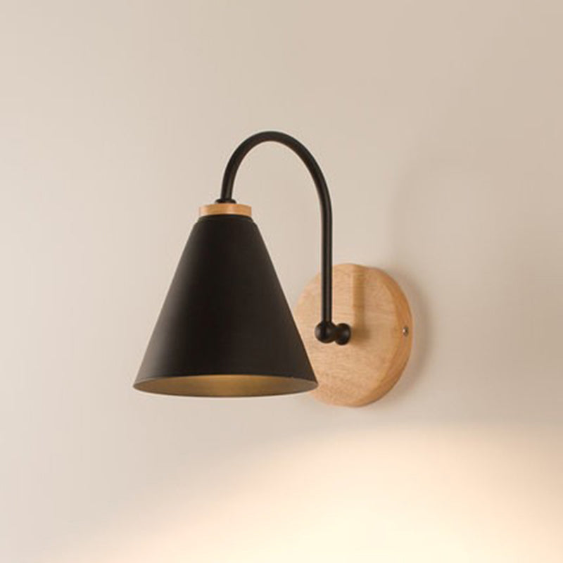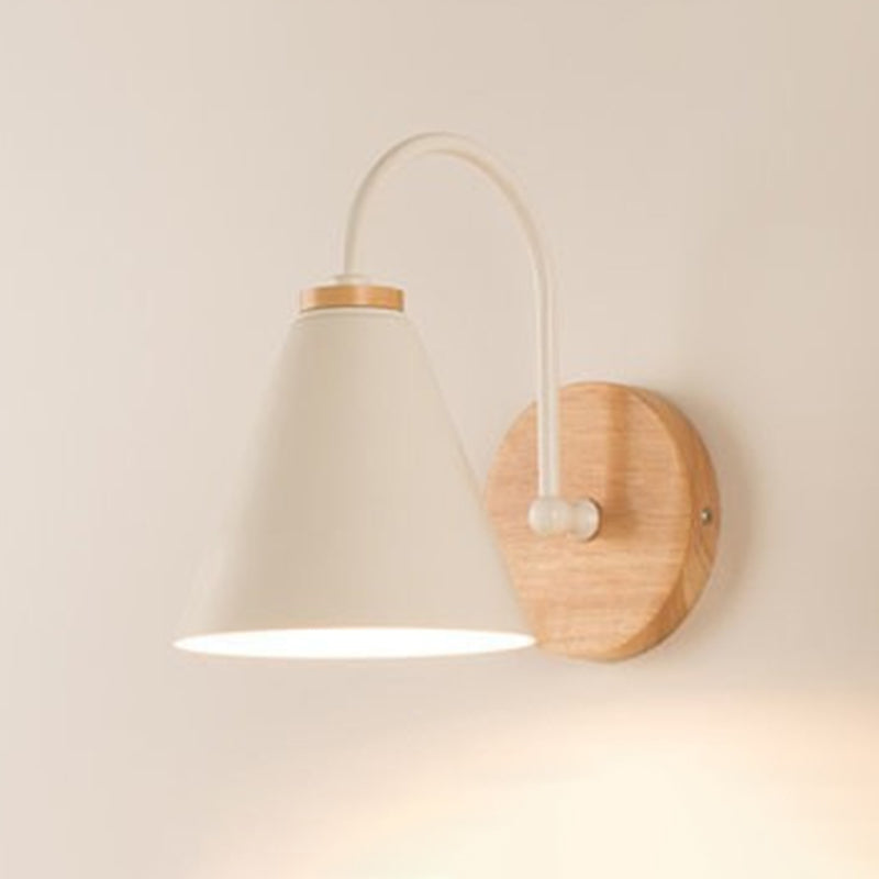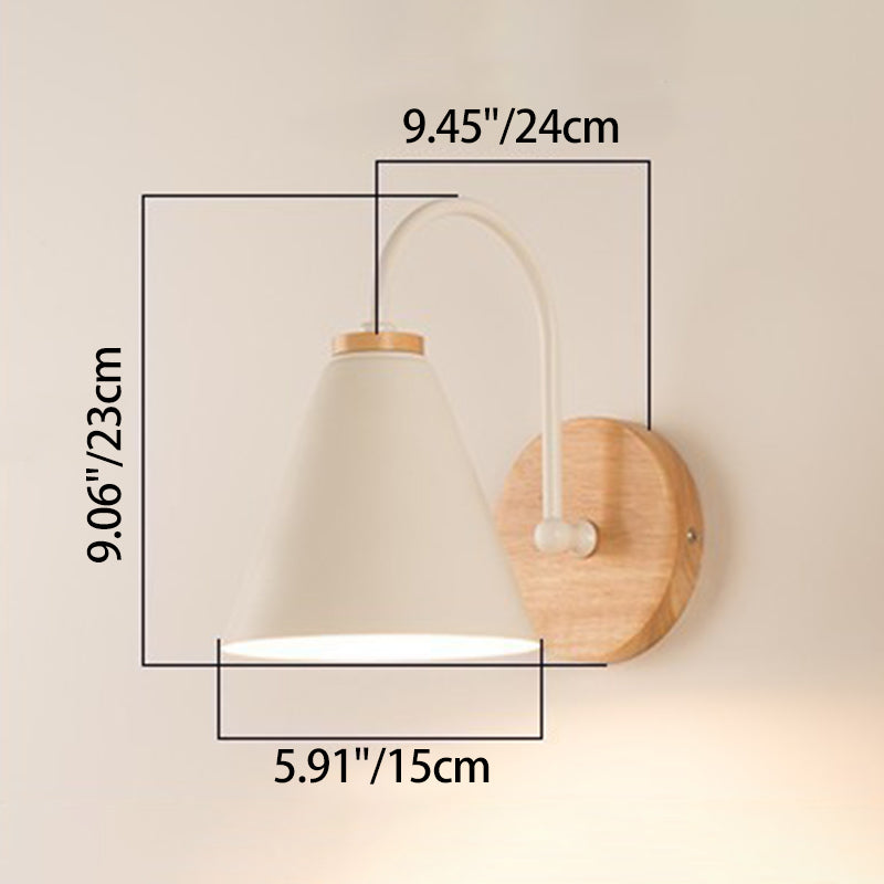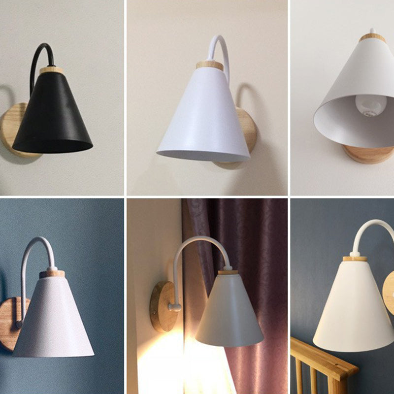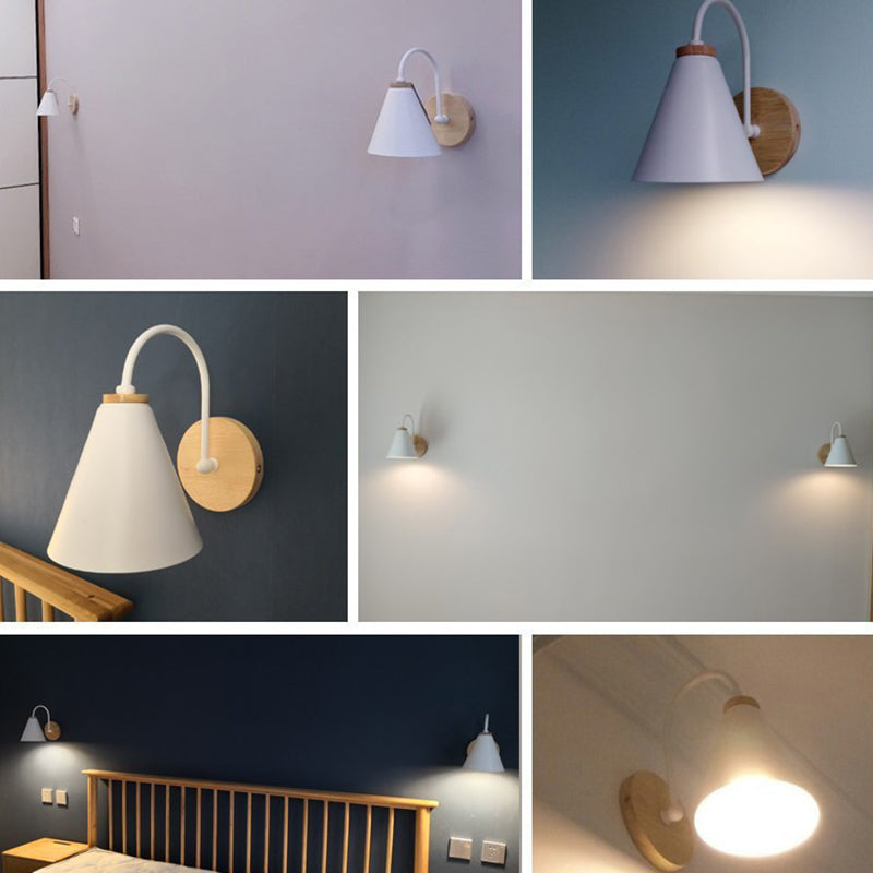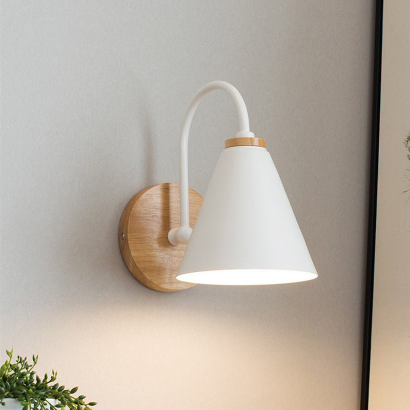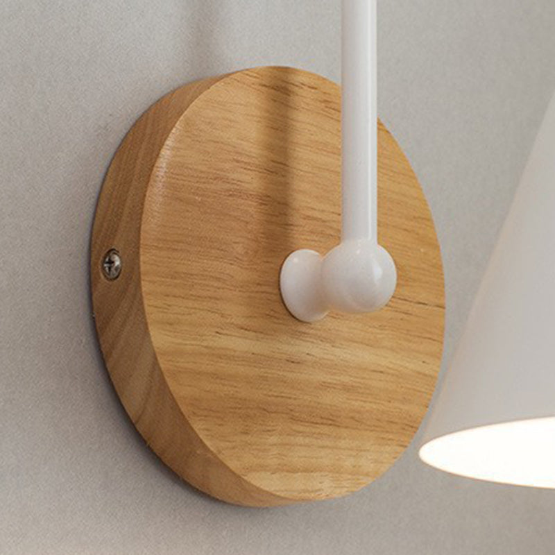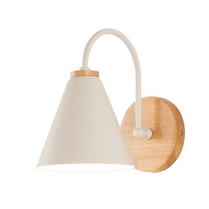 مصباح حائطي معاصر مخروطي الشكل مصنوع من الخشب الصلب ومجهز بإضاءة واحدة لغرفة النوم