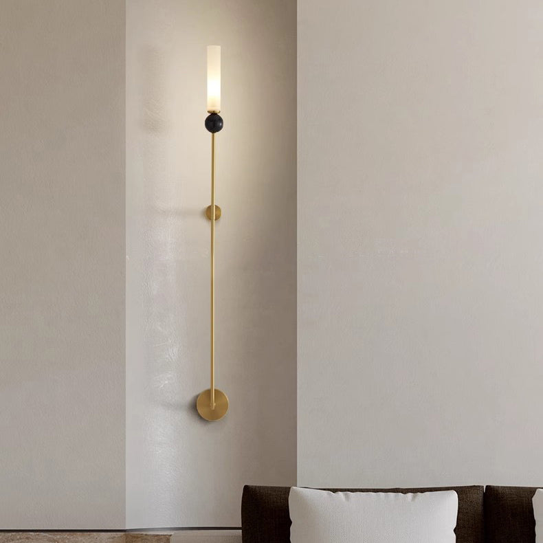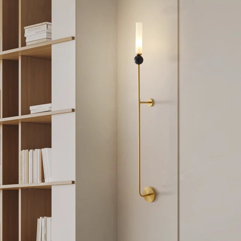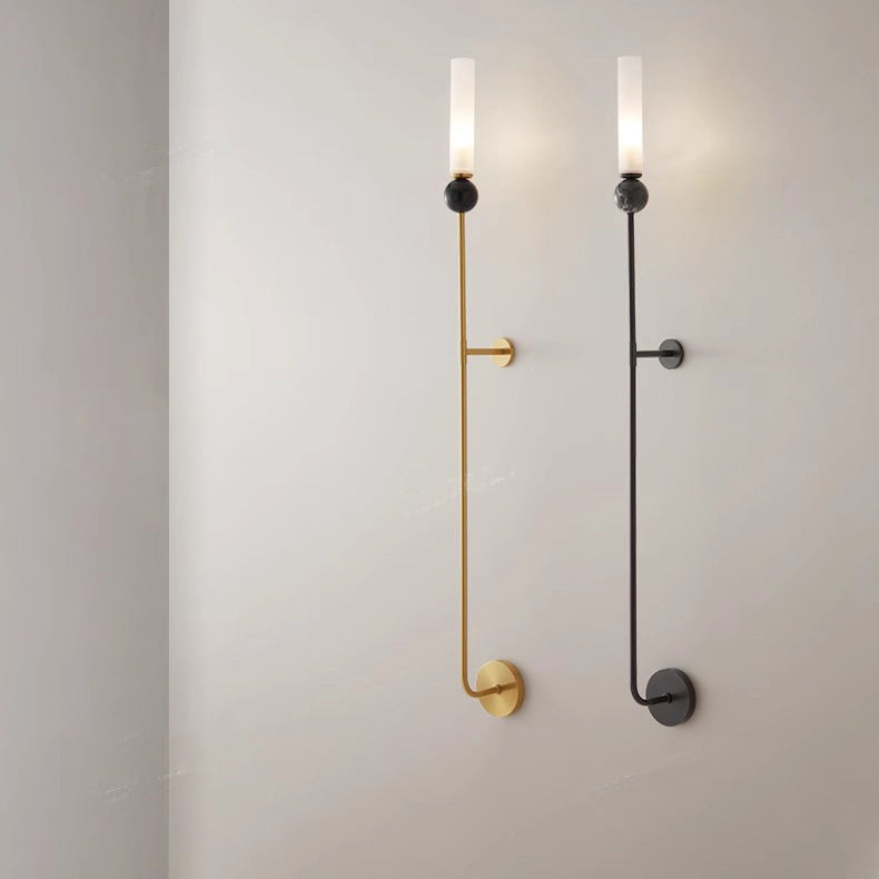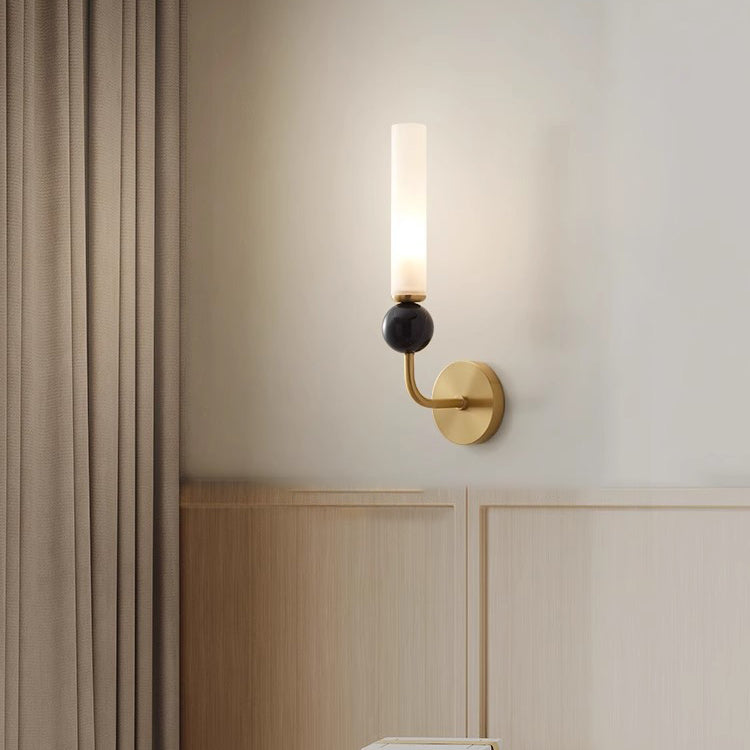 مصباح حائط أسطواني معاصر من النحاس والرخام بتصميم نورديك، مزود بمصباح واحد، للمدخل