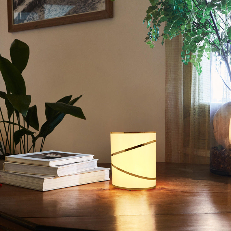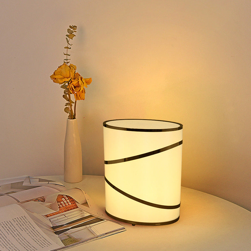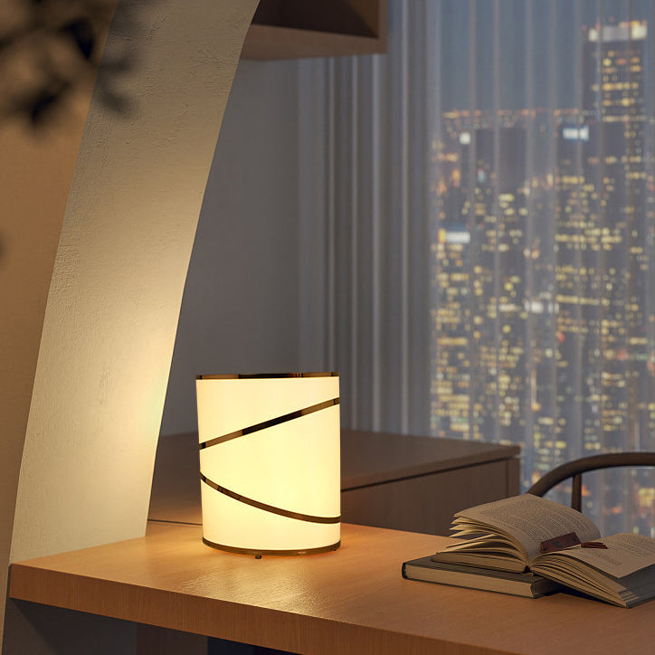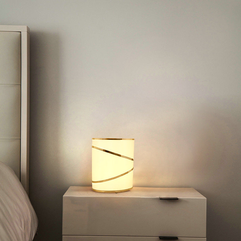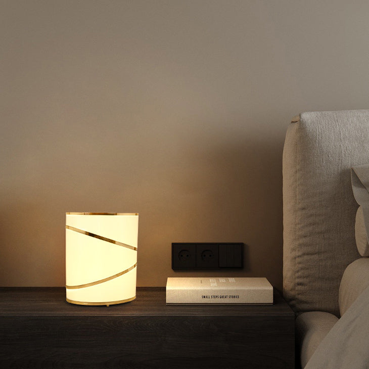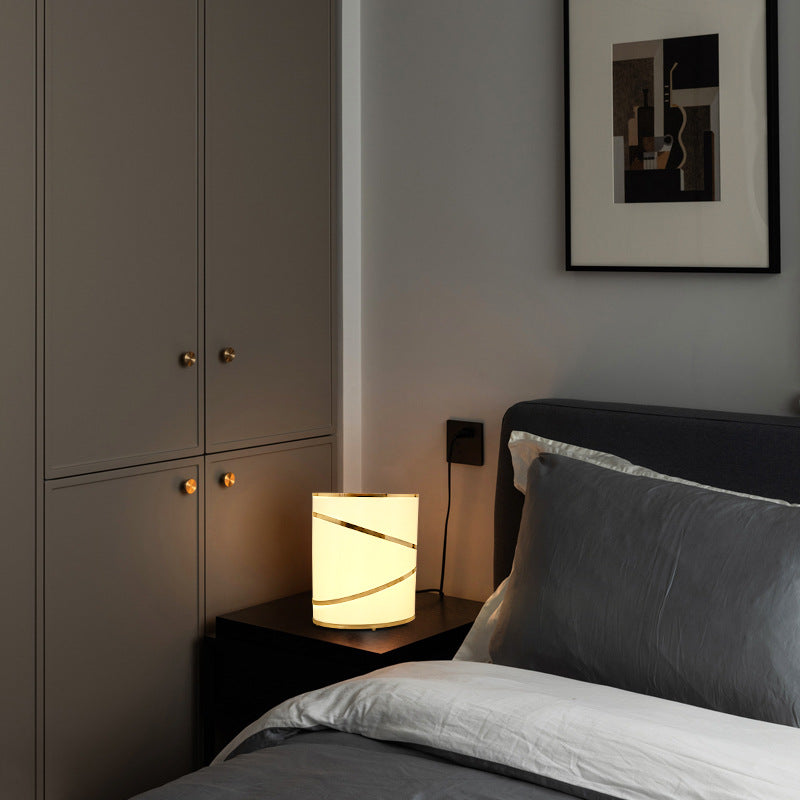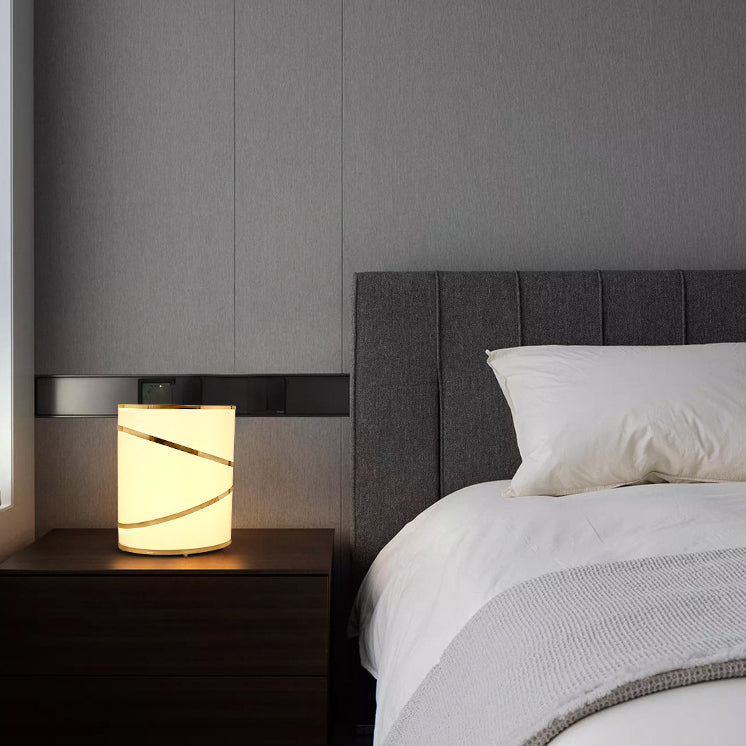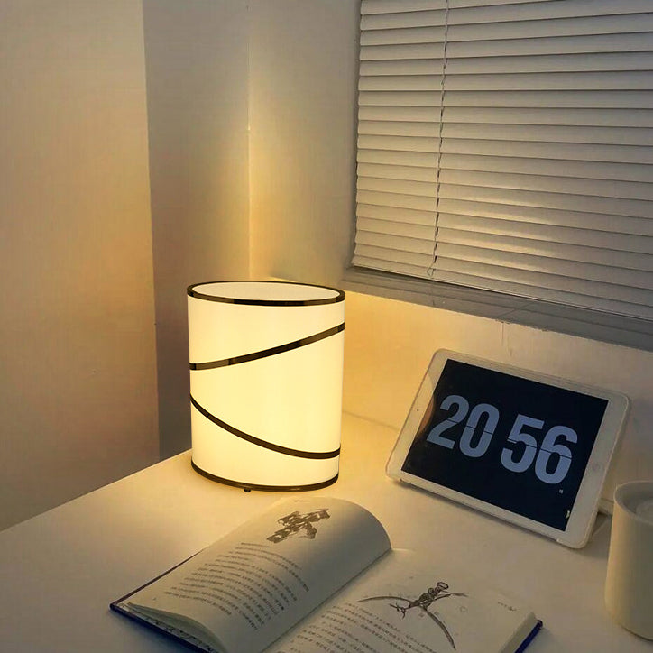 Contemporary Nordic Cylinder Fabric Stainless Steel 3-Light Table Lamp For Bedside