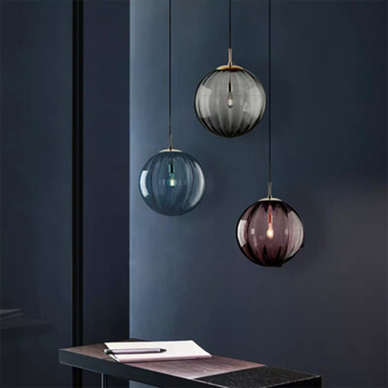 أضف لمسةً مميزةً إلى مساحتك مع هذا المصباح المُعلق على الطراز الشمالي، المصنوع من الزجاج والمعدن بتصميم دائري أنيق. يتميز بسلك تعليق قابل للتعديل، ومتوفر بألوان الرمادي الدخاني والأزرق والبنفسجي والكهرماني، مثالي لغرف النوم أو غرف المعيشة أو البار.