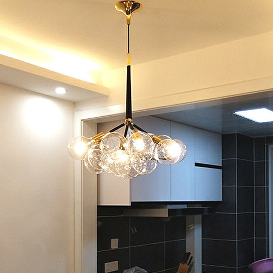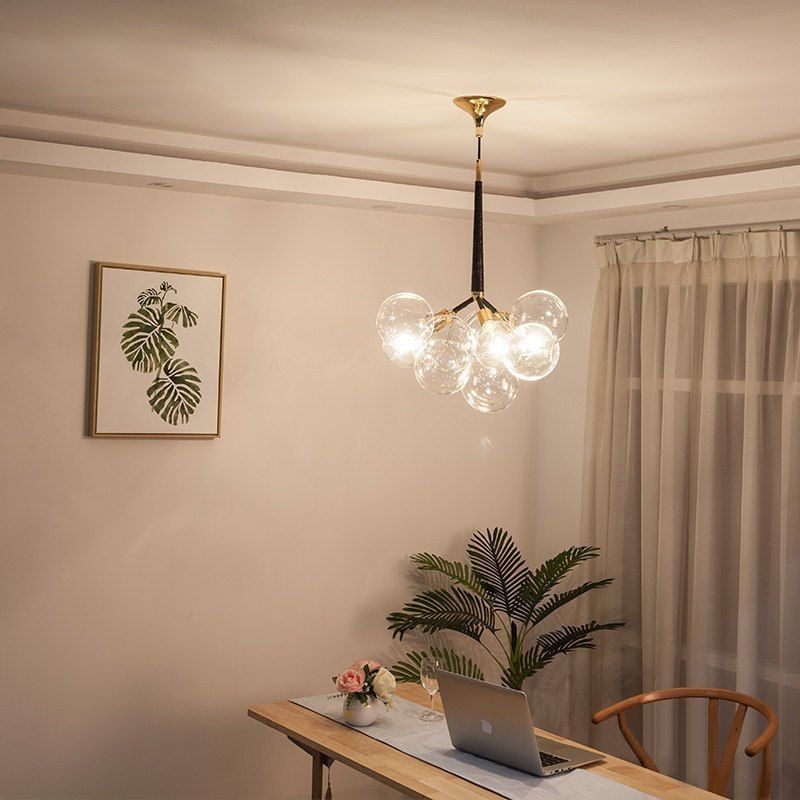 ثريا معاصرة من الحديد والزجاج بتصميم نورديك، بثلاثة مصابيح وستة مصابيح لغرفة المعيشة