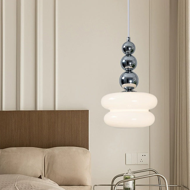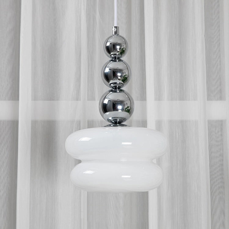 مصباح معلق دائري معاصر من الحديد والزجاج بتصميم نورديك، مزود بمصباح واحد لغرفة المعيشة