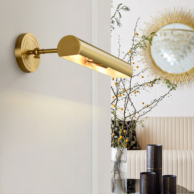 مصباح حائطي معاصر من النحاس الأصفر ذو أسطوانة طويلة بتصميم نورديك، مزود بمصباحين، مناسب للحمام